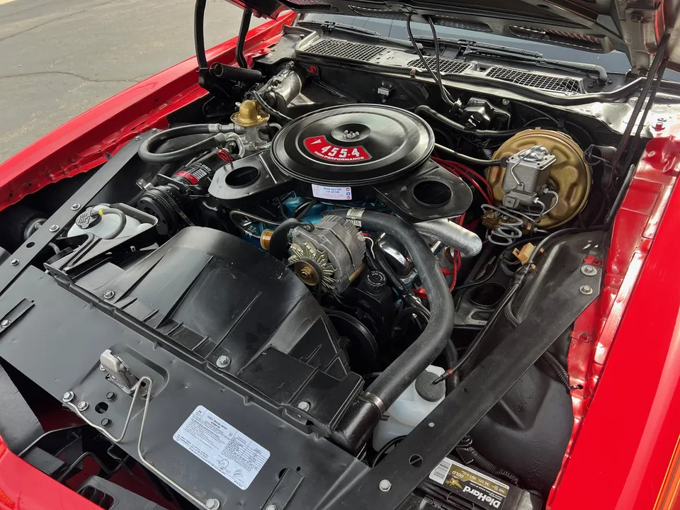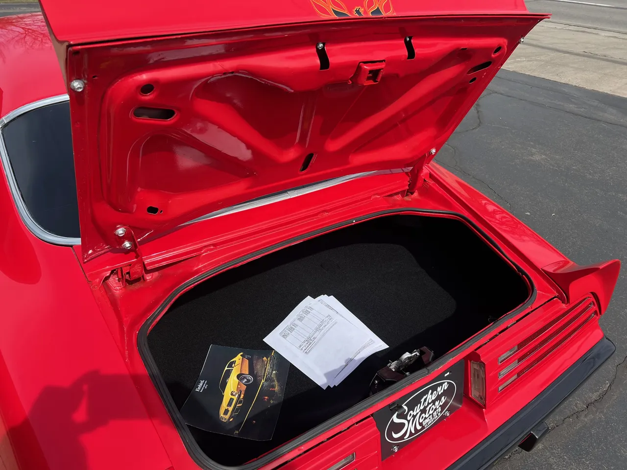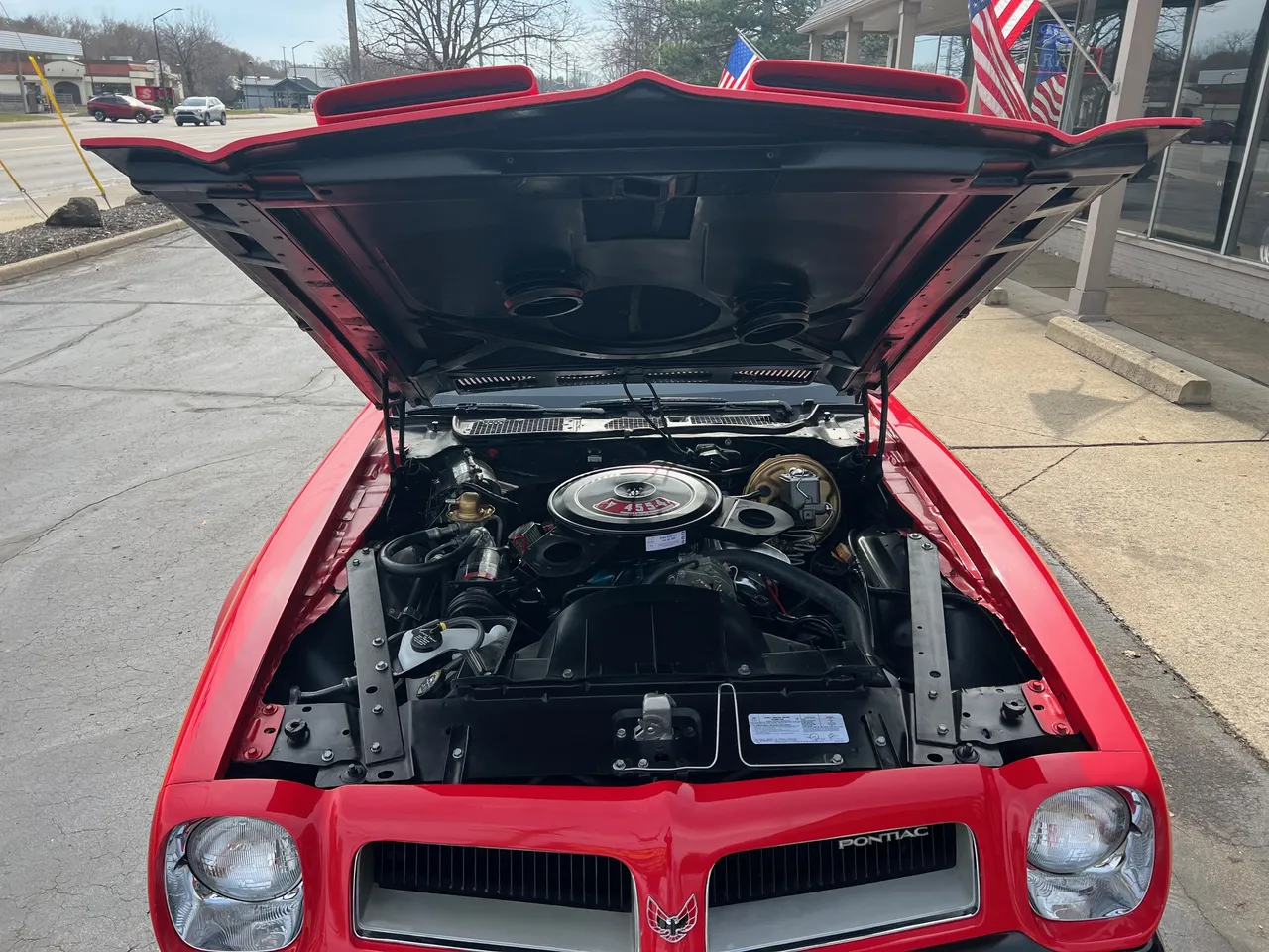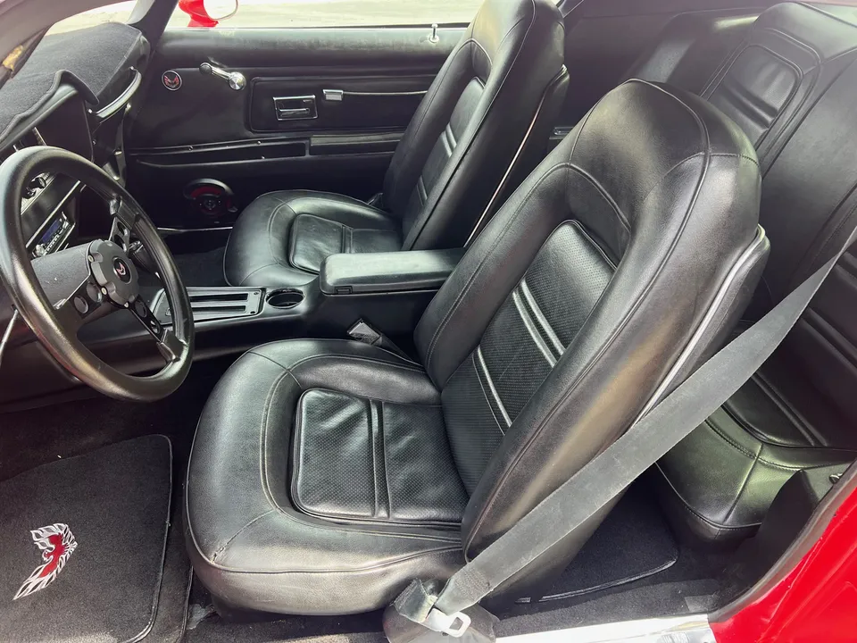 PHS Documented, factory U code Formula, Buccaneer red paint, black vinyl interior, era correct factory Y-code 455 ci engine, 4 bbl, factory intake & exhaust manifolds, Ram Air hood & air cleaner, chrome valve covers, HEI distributor, mild camshaft, power steering, power front disc brakes, factory air conditioning, 400 turbohydramatic transmission, bucket seats with center console, factory steering wheel, factory dash, custom sound system, remote drivers mirror, Flowmaster dual exhaust, 10 bolt rear axle with 3.55 gear, front & rear sway bars, 235/60R15 Cooper tires, 15” Rally II wheels, dual sport mirrors, factory spoilers, original owner’s manual & brochure, Pontiac Power!