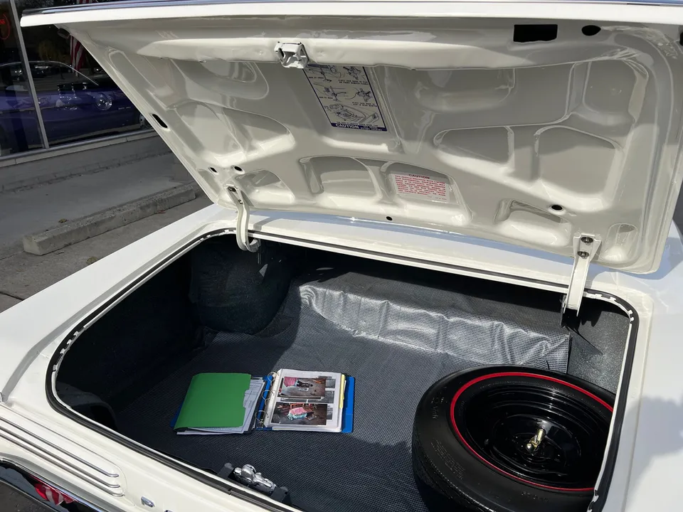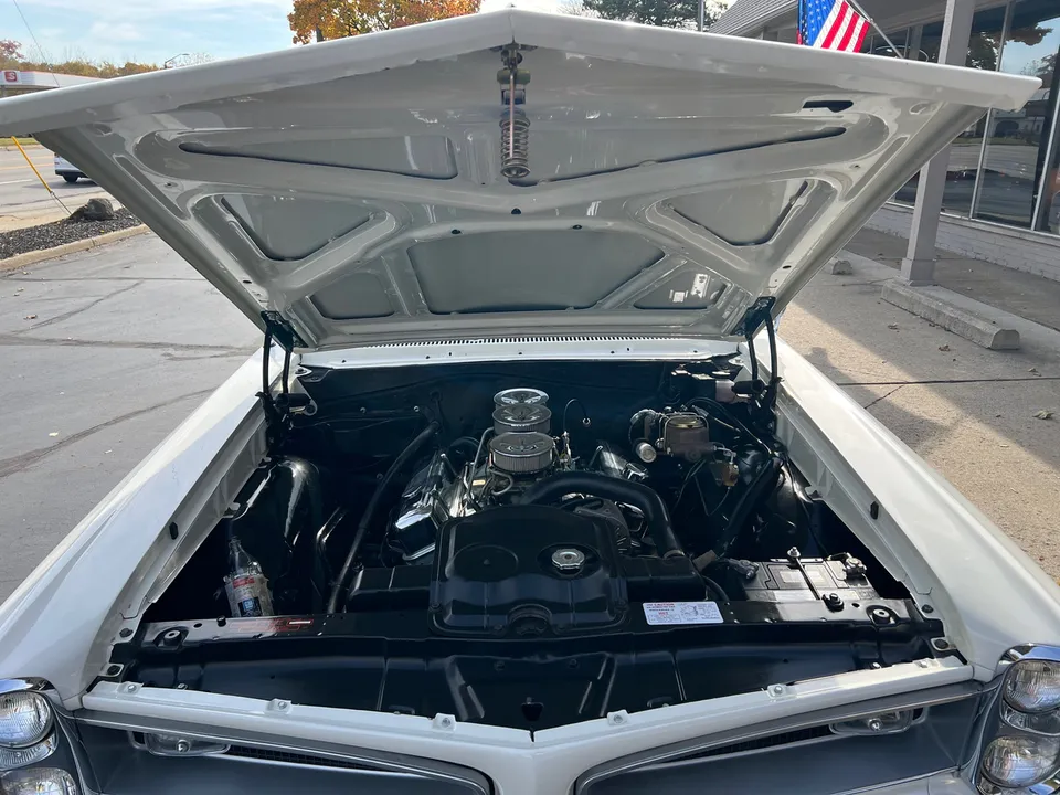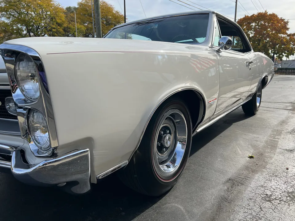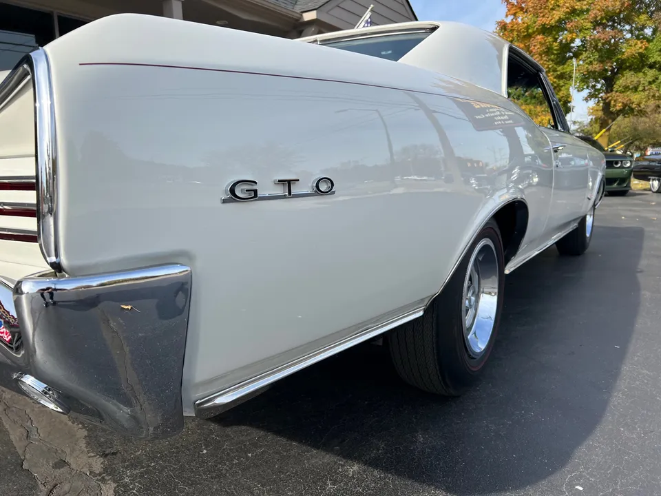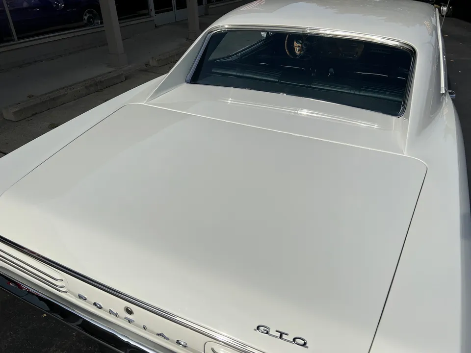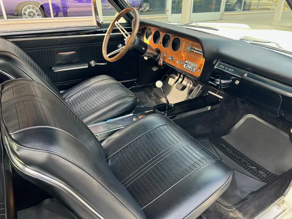 Documented Frame Off Restoration, PHS Documented (242) GTO, clean original (Z) California car, factory (C) Cameo Ivory white car, factory black vinyl interior, 400 ci engine, factory Muncie M20 4 speed car with hydraulic clutch, Tri-Power carbs & intake, Hooker headers, chrome air cleaners & valve covers, power steering, hydroboost front disc brakes, Ridetech tubular front suspension with sway bar, factory bucket seats with center console, tilt column with wood wheel, Hurst shifter, factory Rally dash with tach & gauges, Retrosounds radio, 3” Flowmaster dual exhaust, factory 10 bolt 3.55 Safe-T-Track rear axle with Ridetech suspension, F70-14 Firestone bia-ply redline tires, factory 14” Rally I wheels, GR-RRR!