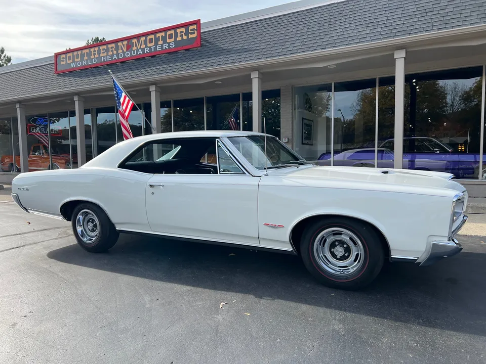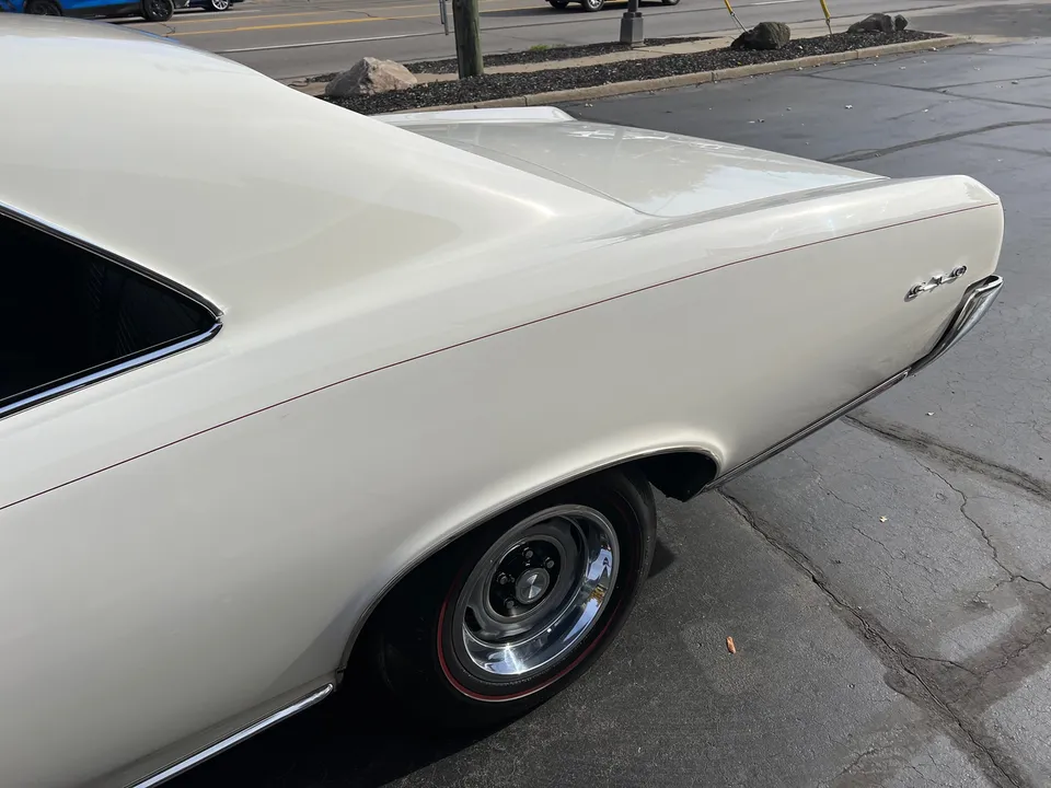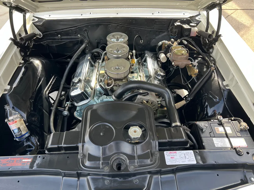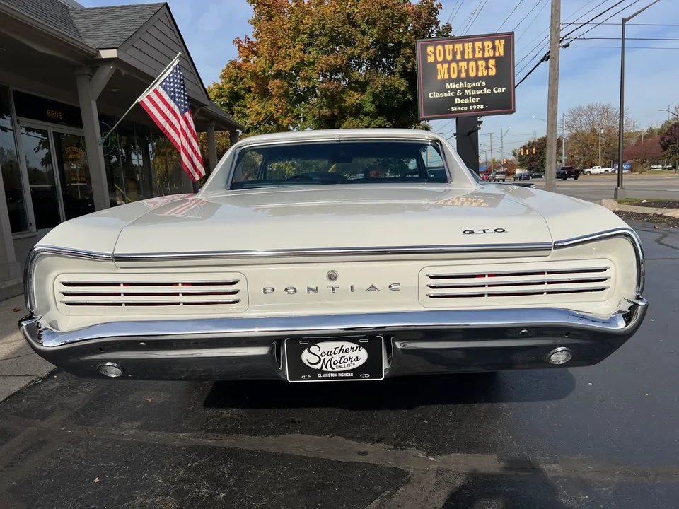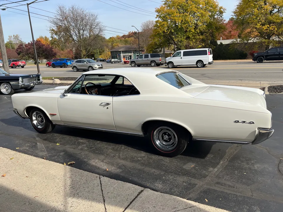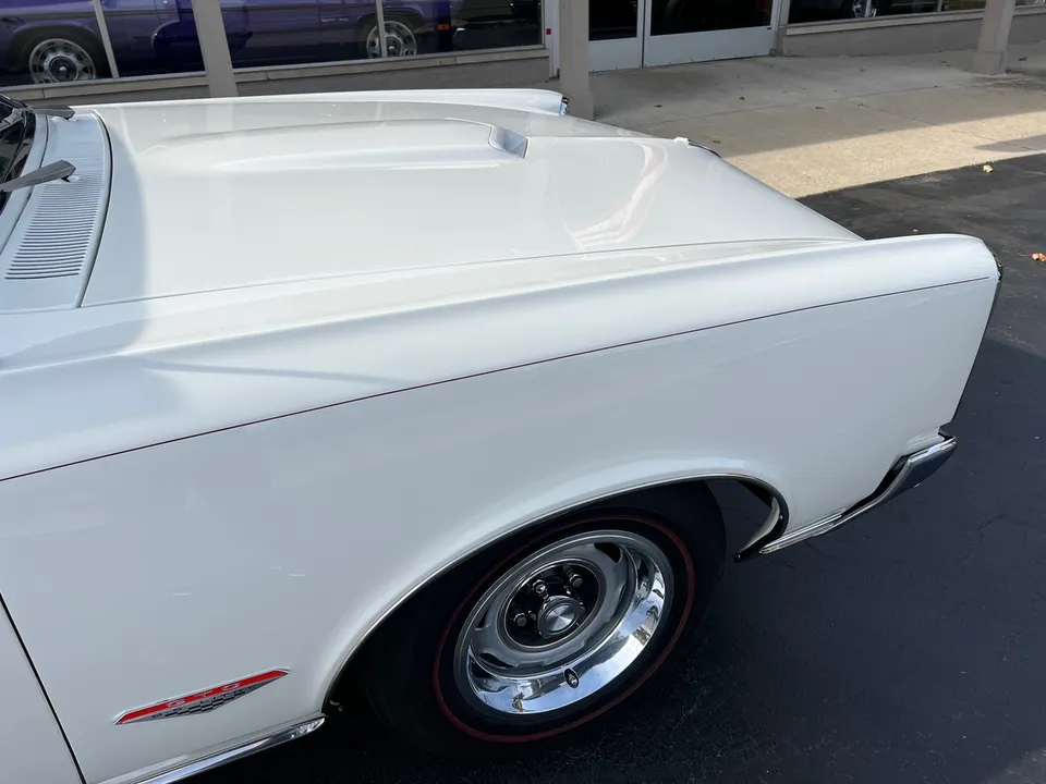 Documented Frame Off Restoration, PHS Documented (242) GTO, clean original (Z) California car, factory (C) Cameo Ivory white car, factory black vinyl interior, 400 ci engine, factory Muncie M20 4 speed car with hydraulic clutch, Tri-Power carbs & intake, Hooker headers, chrome air cleaners & valve covers, power steering, hydroboost front disc brakes, Ridetech tubular front suspension with sway bar, factory bucket seats with center console, tilt column with wood wheel, Hurst shifter, factory Rally dash with tach & gauges, Retrosounds radio, 3” Flowmaster dual exhaust, factory 10 bolt 3.55 Safe-T-Track rear axle with Ridetech suspension, F70-14 Firestone bia-ply redline tires, factory 14” Rally I wheels, GR-RRR!