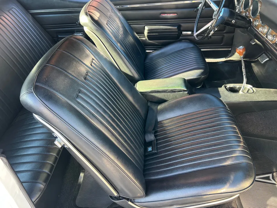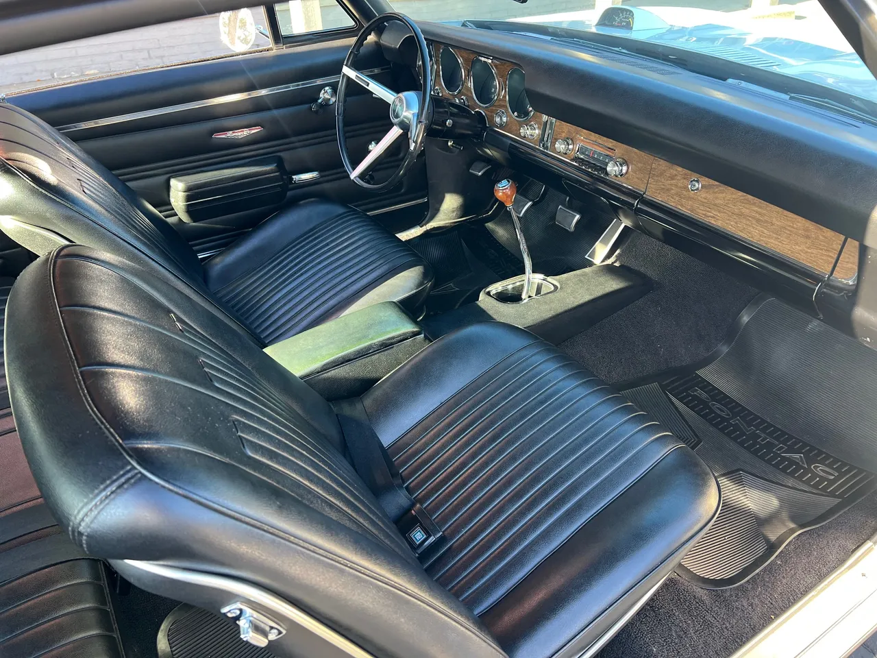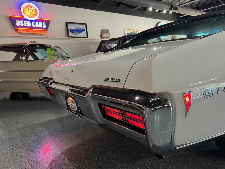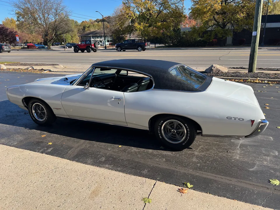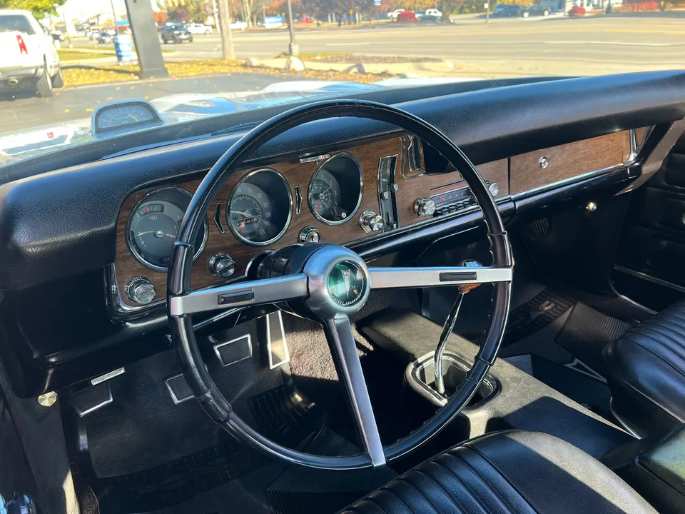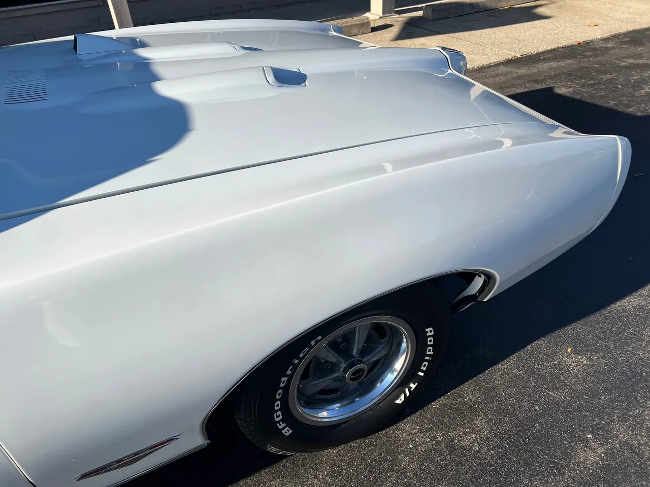 PHS Documented, 3 Owner Car, factory (C) Cameo Ivory car, factory (223) black vinyl interior, factory (2) black vinyl top, matching numbers 400 ci/360 hp HO engine, matching numbers Muncie 4 speed manual transmission, factory 4 bbl, factory intake & exhaust manifolds, chrome air cleaner & valve covers, power steering, power brakes, factory bucket seats with center console, factory Hurst shifter, factory Rally dash with hood tach, original am radio with power rear antenna, wood grain dash, dual exhaust, factory 3.55 Sure Grip rear axle, 225/70R14 BF Goodrich Radial T/A tires, factory 14” Rally II wheels with correct PMD caps & lugs, factory jack with spare, Soft Ray glass, hide-away headlights, 70,000 original miles, 1 of 6197 Produced, GR-RRR!