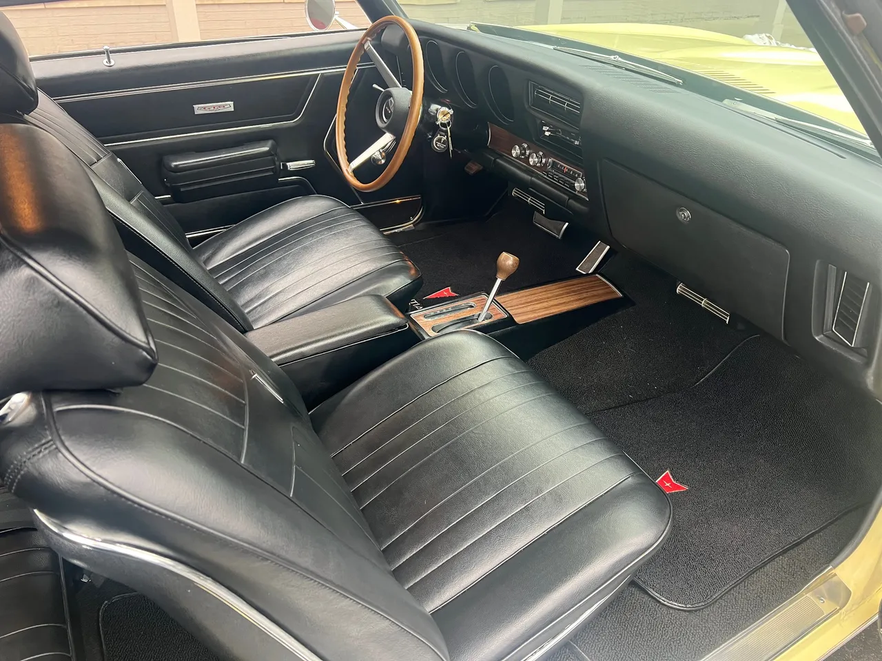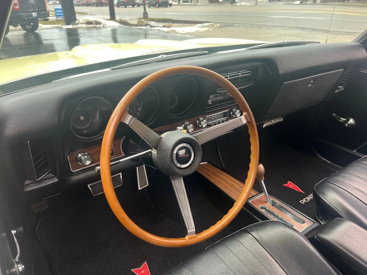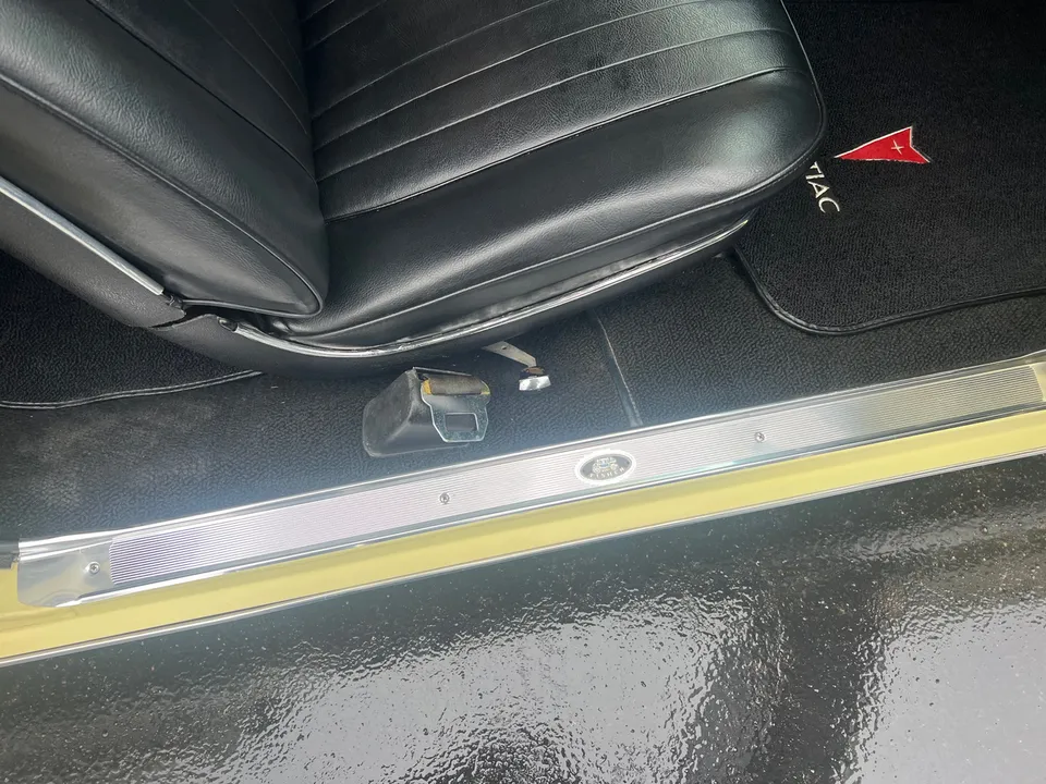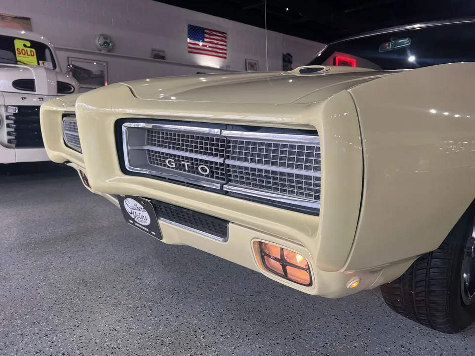True (242) GTO, clean original California car, factor (40) Mayfair maze car, factory black vinyl interior, factory black vinyl top, matching numbers 400 ci/350 hp engine, 4 bbl, factory intake & exhaust manifolds, factory air cleaner & valve covers, power steering, power front disc brakes, factory air conditioning, 400 turbohydramatic transmission, factory bucket seats with center console, factory Sport steering wheel, factory wood grain dash, factory gauges, am radio, Flowmaster dual exhaust, factory 10 bolt 3.23 rear axle, 235/60R14 Cooper tires, factory 14” Rally II wheels, enduro front bumper, factory hidden headlights, Soft Ray glass, factory jack with spare, T3 headlights, Original Paperwork & Documentation Since New!