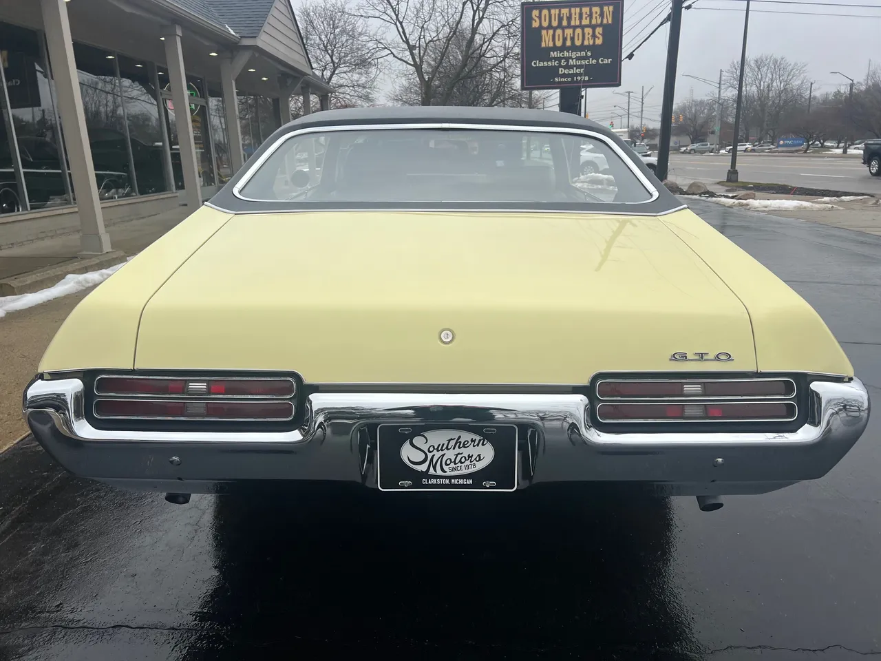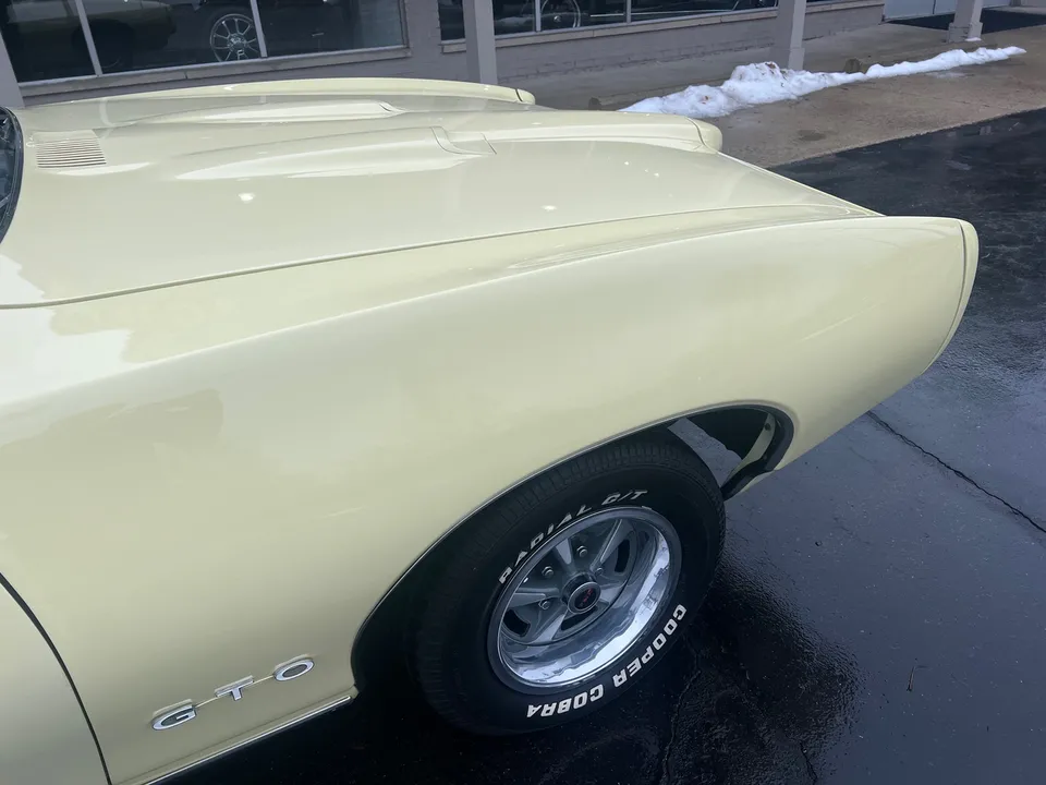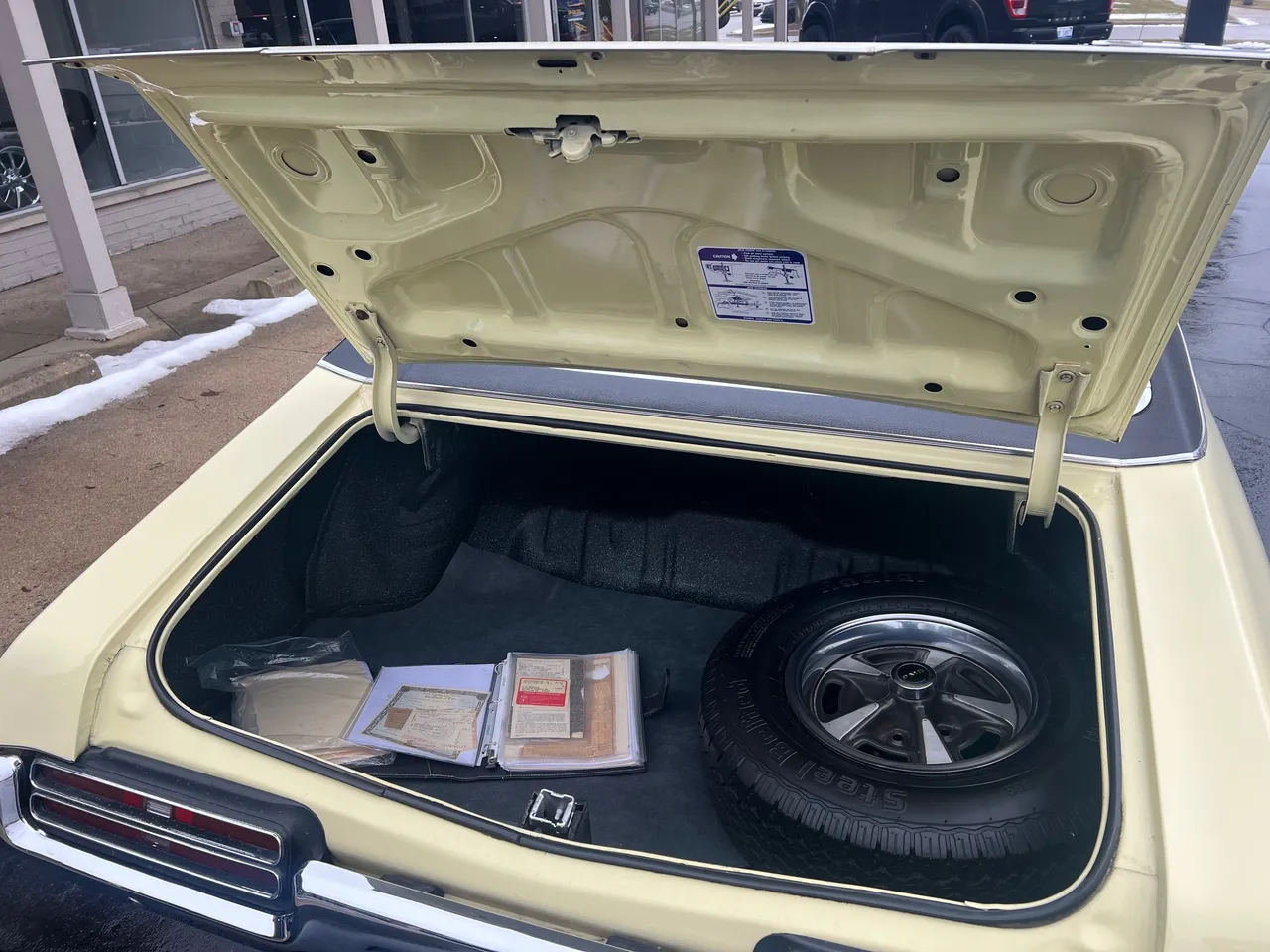 True (242) GTO, clean original California car, factor (40) Mayfair maze car, factory black vinyl interior, factory black vinyl top, matching numbers 400 ci/350 hp engine, 4 bbl, factory intake & exhaust manifolds, factory air cleaner & valve covers, power steering, power front disc brakes, factory air conditioning, 400 turbohydramatic transmission, factory bucket seats with center console, factory Sport steering wheel, factory wood grain dash, factory gauges, am radio, Flowmaster dual exhaust, factory 10 bolt 3.23 rear axle, 235/60R14 Cooper tires, factory 14” Rally II wheels, enduro front bumper, factory hidden headlights, Soft Ray glass, factory jack with spare, T3 headlights, Original Paperwork & Documentation Since New!