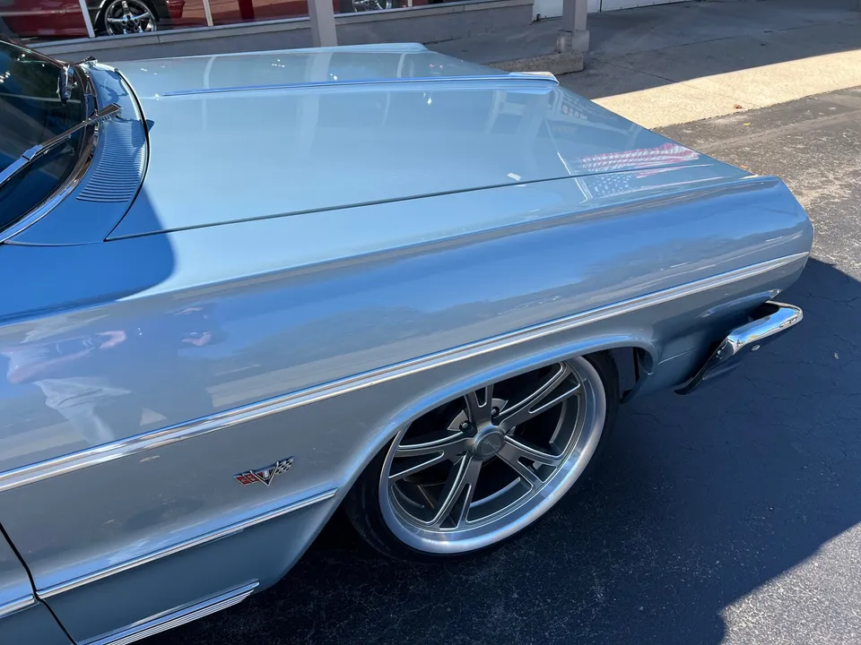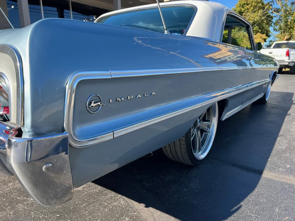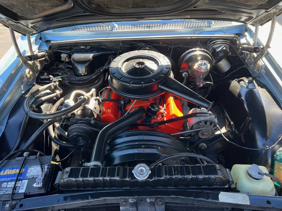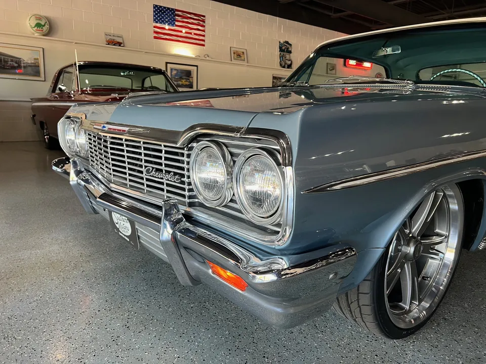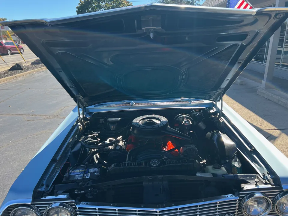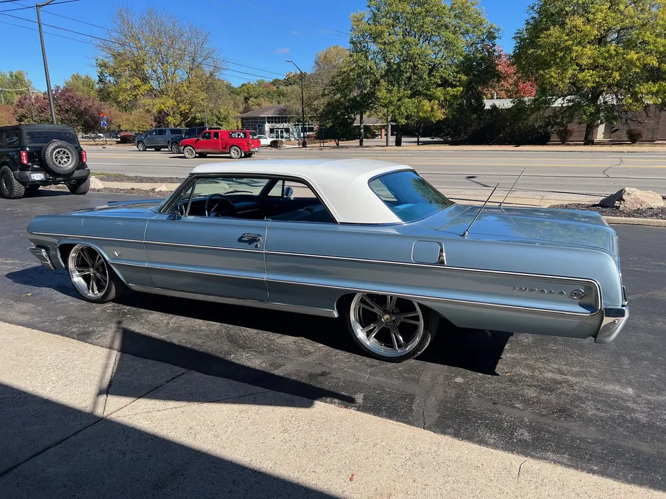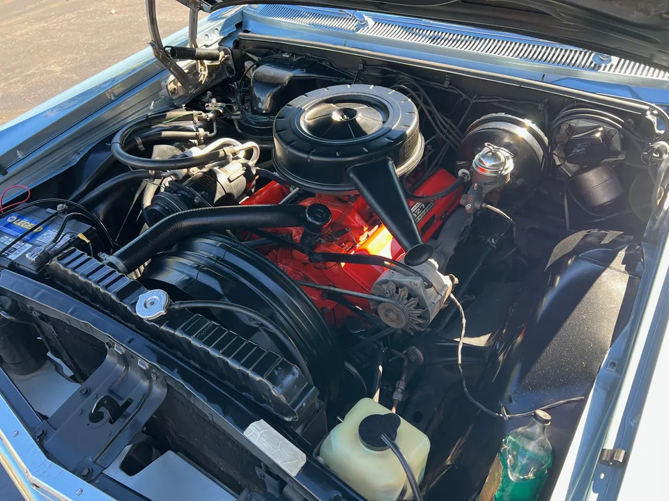 Frame-Off Restored, beautiful (912) two tone silver blue metallic & Ermine white paint, factory (842) blue interior, factory 327 ci engine, 4 bbl, factory intake & exhaust manifolds, factory aire cleaner & valve covers, power steering, power brakes, factory air conditioning, Harrison radiator with shroud, automatic transmission, factory bench seat, original dash & gauges, Delco am radio, factory tissue dispenser, dual exhaust, factory rear axle, 235/35ZR20 Nitto tires, 20” Ridler wheels, factory jack with spare, original owner’s manual, dual chrome mirrors, dual antenna, Drive Anywhere!