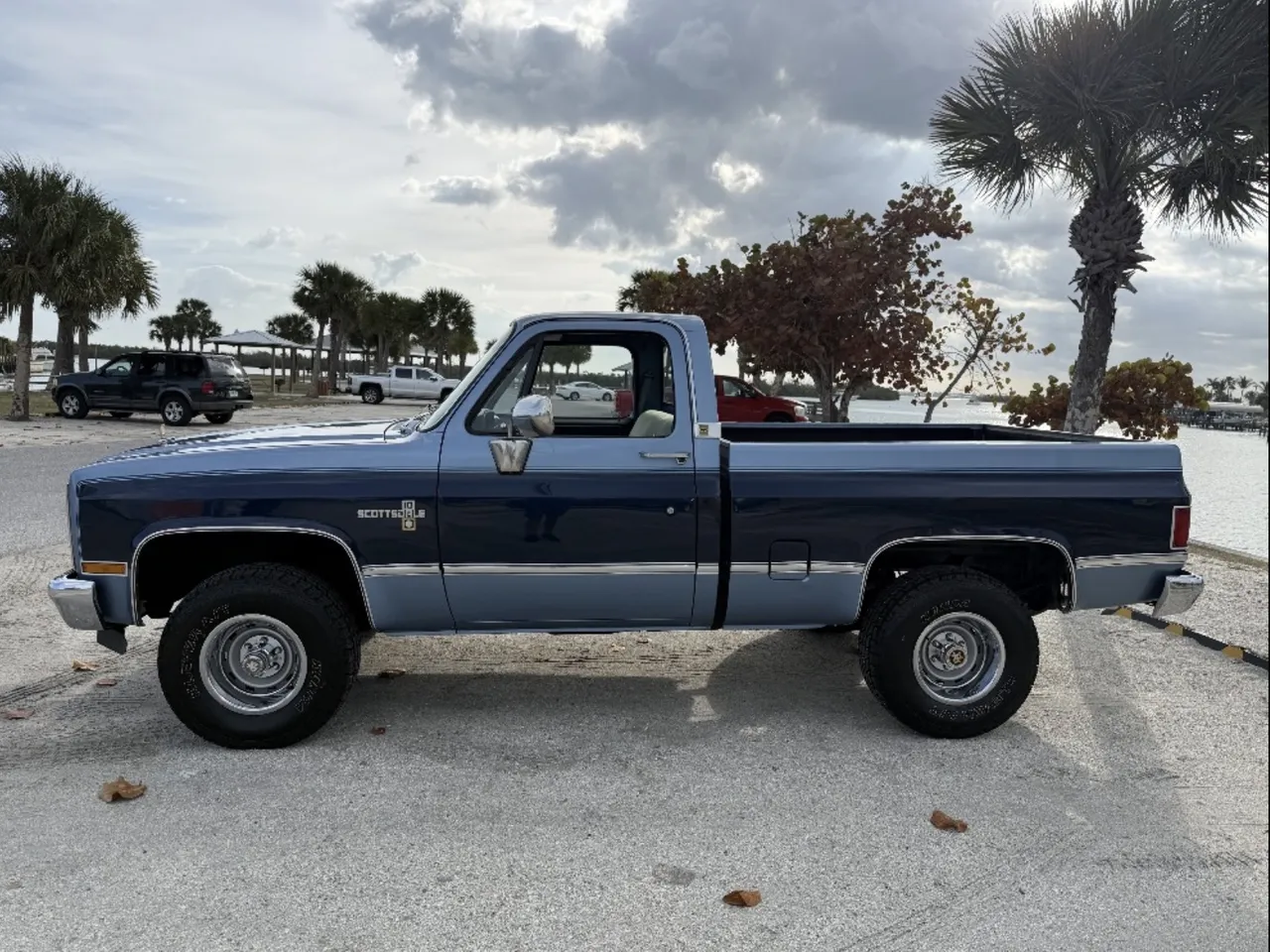 Coming Soon! 1982 Chevrolet Scottsdale 4X4, new twin tone blue paint, two tone cloth interior, 305 ci engine, automatic transmission, power steering, power disc brakes, upgraded air conditioning, factory bench seat, tilt column, factory dash & gauges, Delco am-fm-cassette radio, power windows & locks, Ryno lino bed, dual exhaust, factory Rally wheels, Drive Anywhere! $38,900