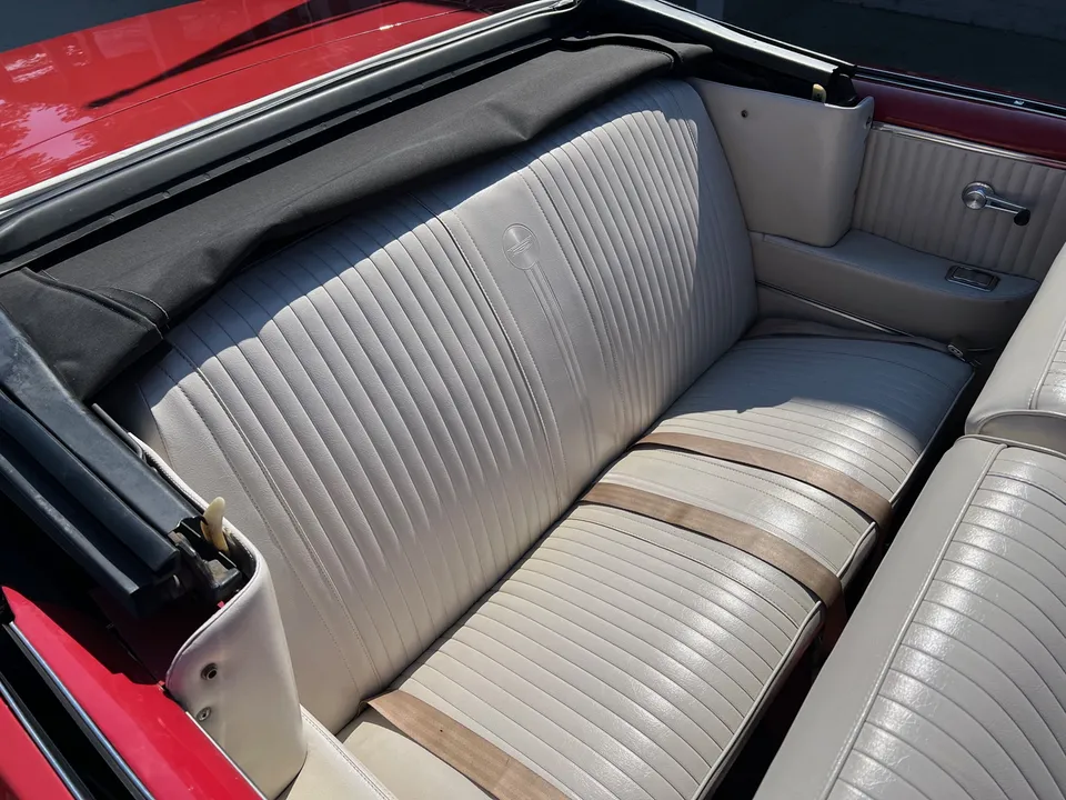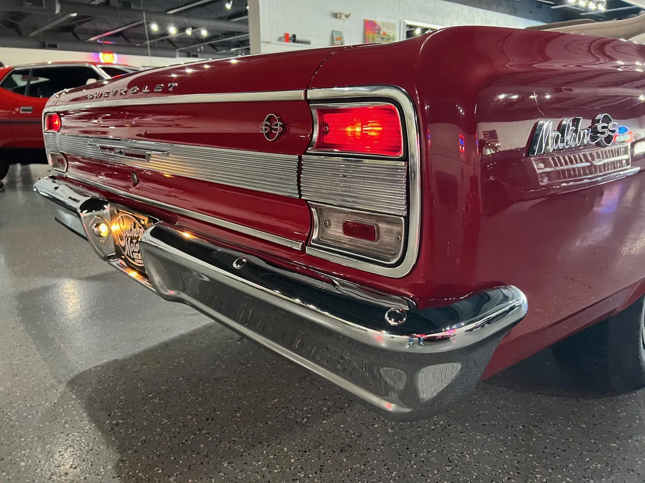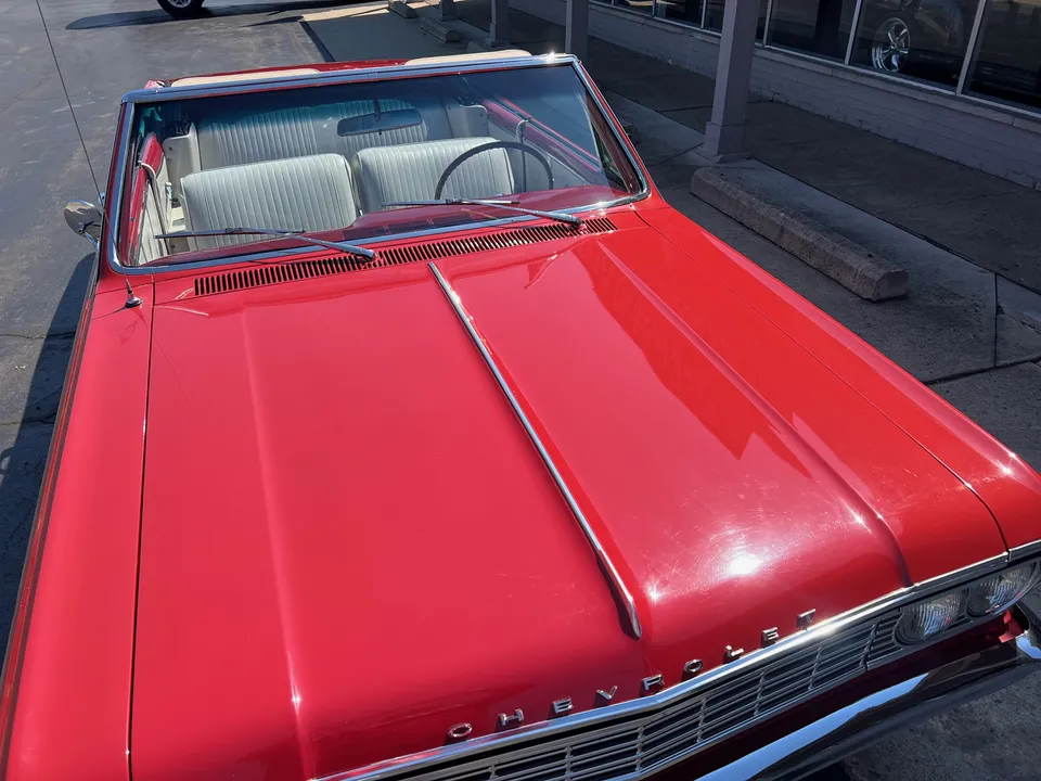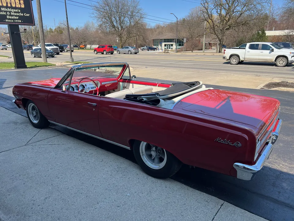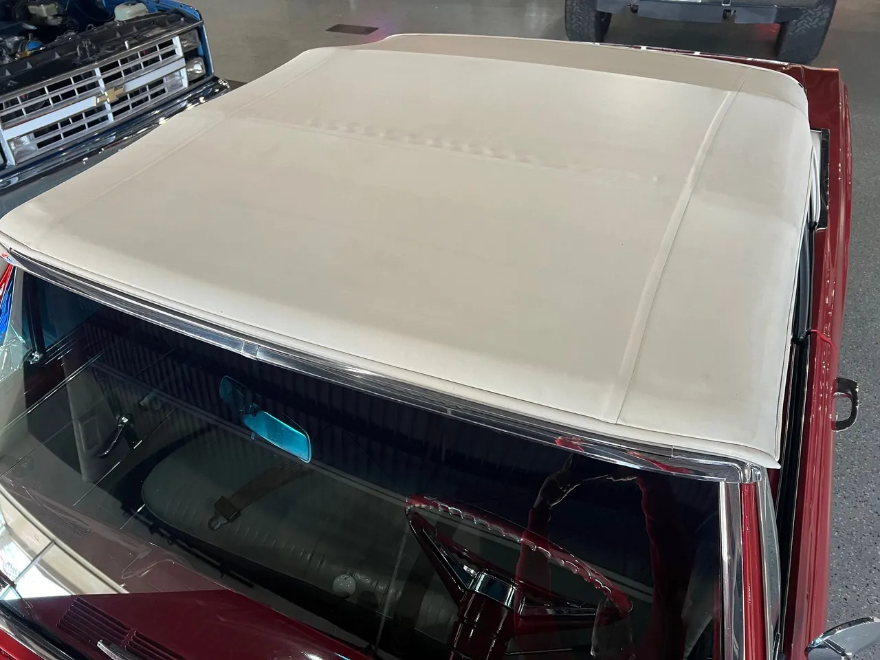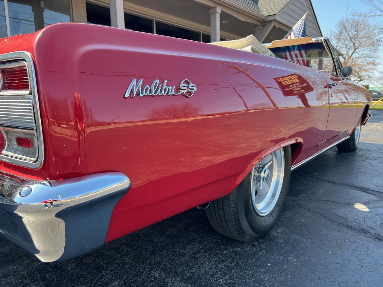 Clean Tennessee car, Ember red paint, white convertible top, Ivory vinyl interior, 396 ci engine, Muncie 4-speed manual transmission, Holley 4 bbl, aluminum intake, HEI distributor, factory exhaust manifolds, mild camshaft, chrome air cleaner & valve covers, power steering, CPP power front disc brakes, tubular upper & lower control arms, aluminum radiator, factory bench seat, factory dash & gauges, Audiosounds radio, factory floor shifter, Flowmaster dual exhaust, 10 bolt 3.23 rear axle, boxed control arms, rear sway bar, 225/75R15 rear tires, 205/75R15 fronts, 15” American Racing Torque Thrust D wheels, factory jack with spare, Soft Ray glass, Ready to Cruise!