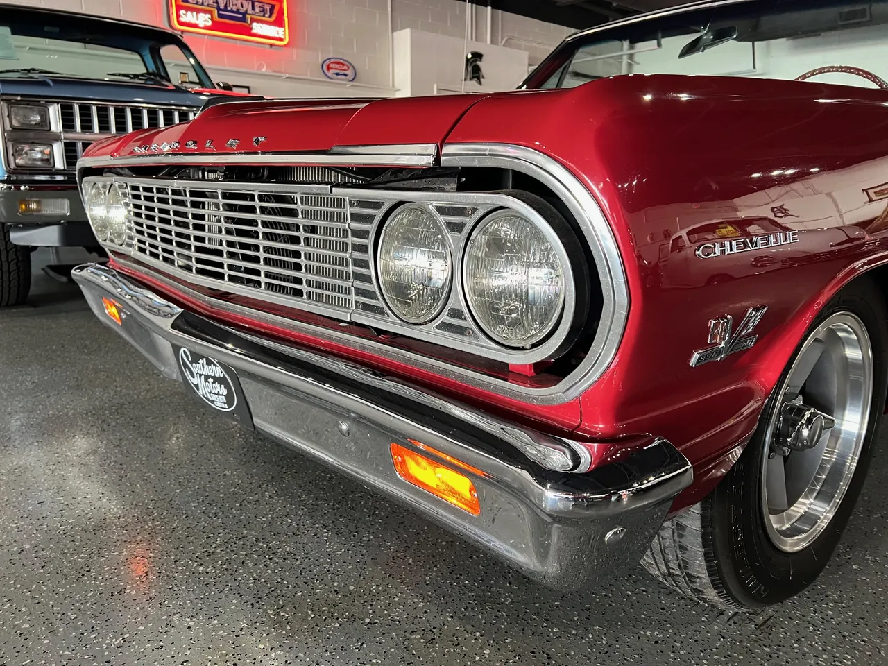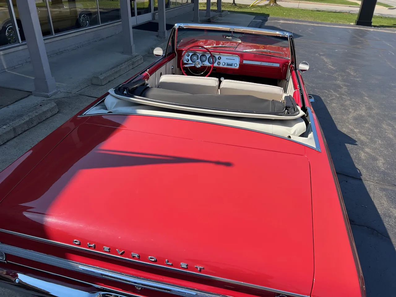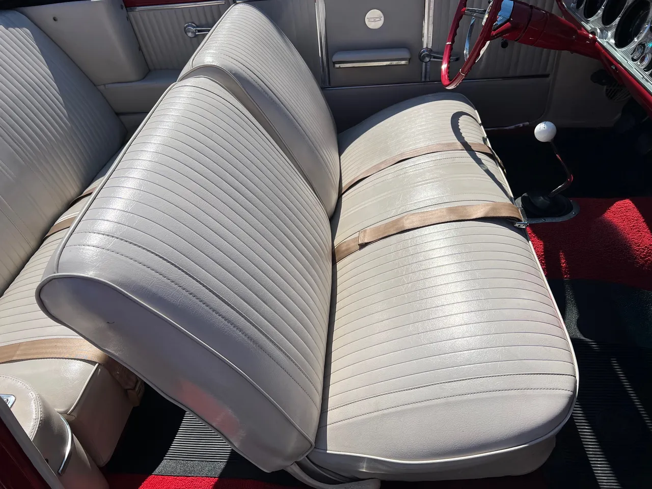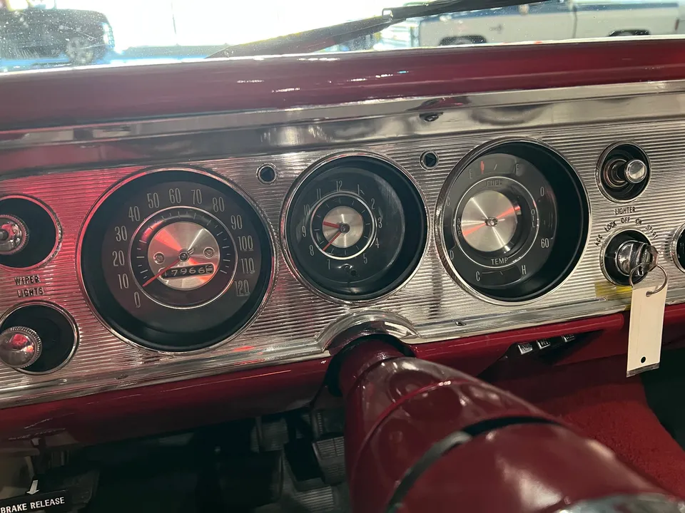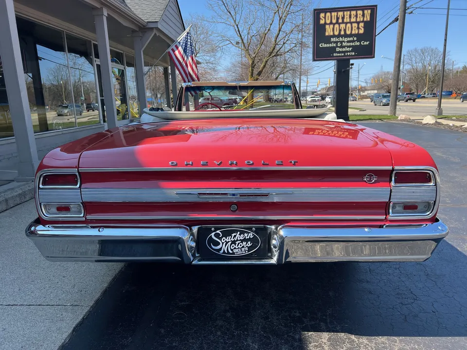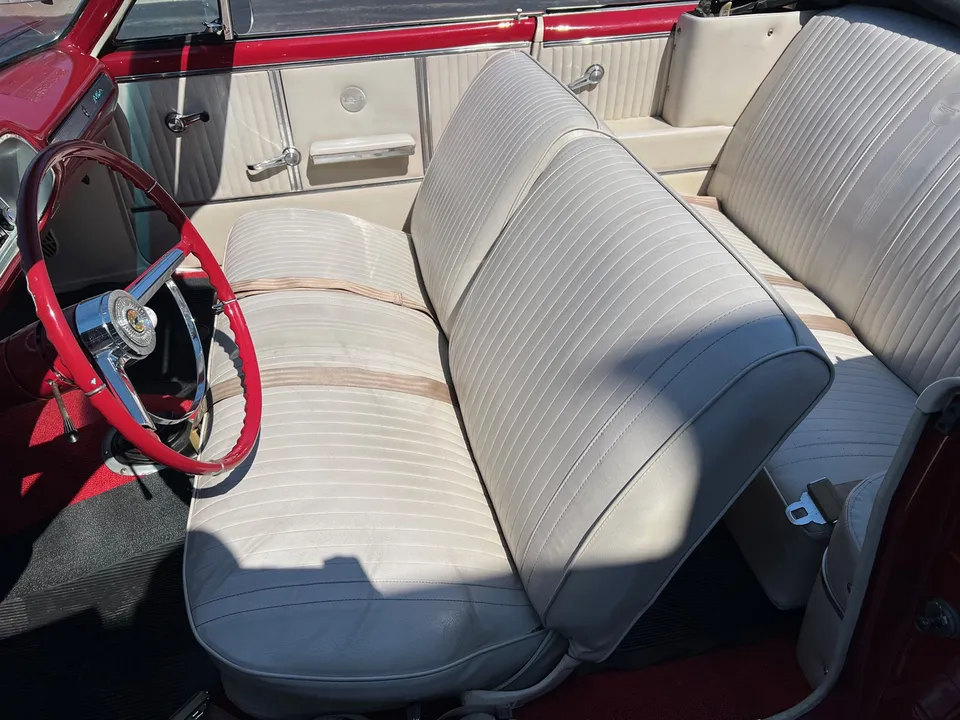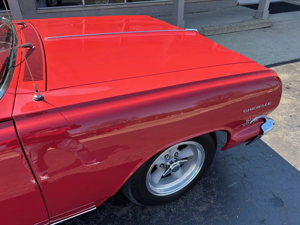 Clean Tennessee car, Ember red paint, white convertible top, Ivory vinyl interior, 396 ci engine, Muncie 4-speed manual transmission, Holley 4 bbl, aluminum intake, HEI distributor, factory exhaust manifolds, mild camshaft, chrome air cleaner & valve covers, power steering, CPP power front disc brakes, tubular upper & lower control arms, aluminum radiator, factory bench seat, factory dash & gauges, Audiosounds radio, factory floor shifter, Flowmaster dual exhaust, 10 bolt 3.23 rear axle, boxed control arms, rear sway bar, 225/75R15 rear tires, 205/75R15 fronts, 15” American Racing Torque Thrust D wheels, factory jack with spare, Soft Ray glass, Ready to Cruise!