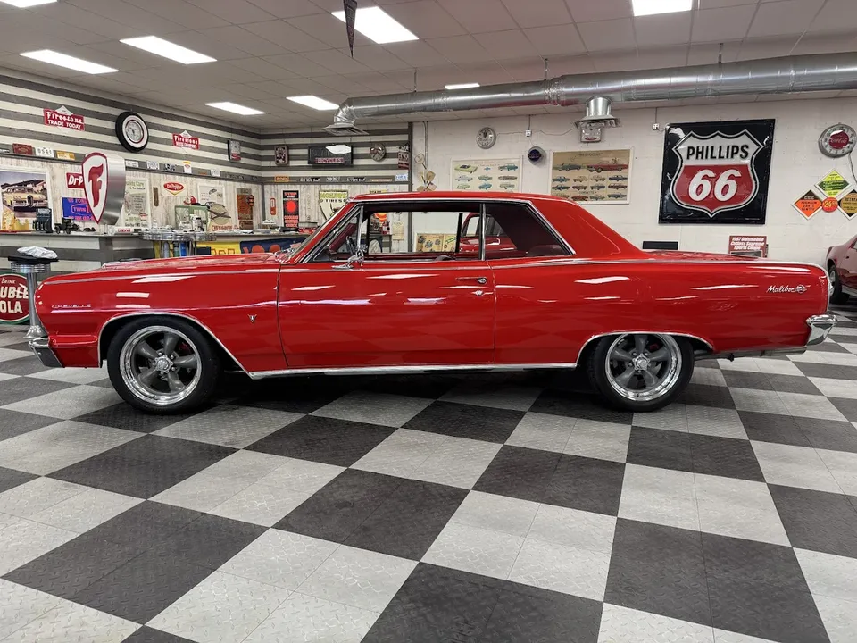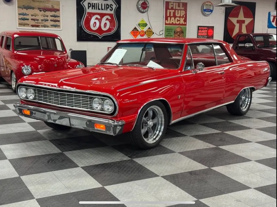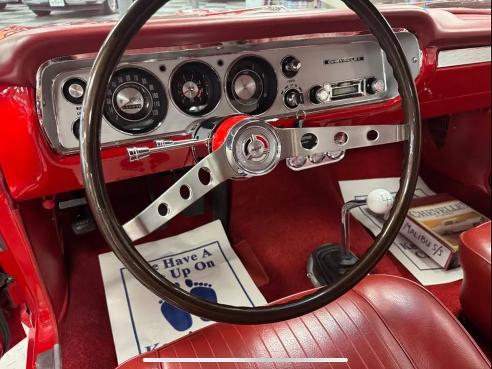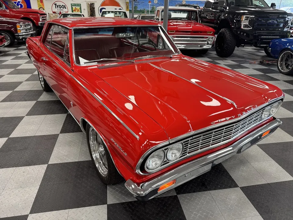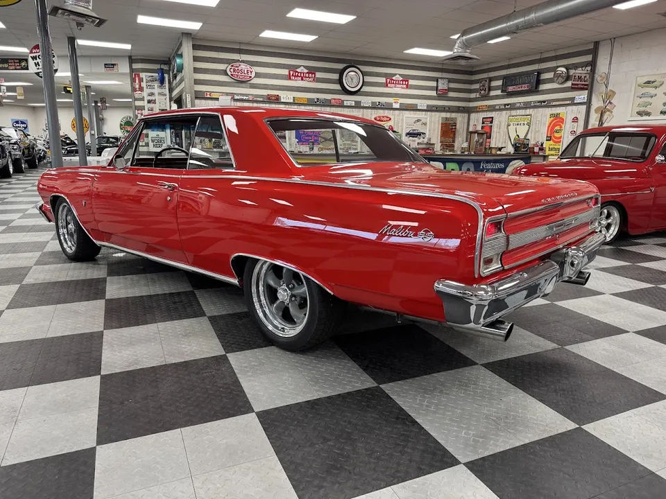 Coming Soon! 1964 Chevrolet Malibu SS, Custom Resto-mod, stunning Victory red paint, factory red vinyl interior, 383 ci stroker crate engine, Muncie 4-speed transmission, power steering, power 4-wheel disc brakes, bucket seat interior, factory tach & gauges, tilt column, two bar wood wheel, Retrosounds radio, Hurst shifter, Curry 9ā rear axle, front & rear sway bars, lowered 2/3 with dropped spindles & springs, 17ā Torque Thrust Dās with BFG performance radials, One Bad Bowtie! $49,900