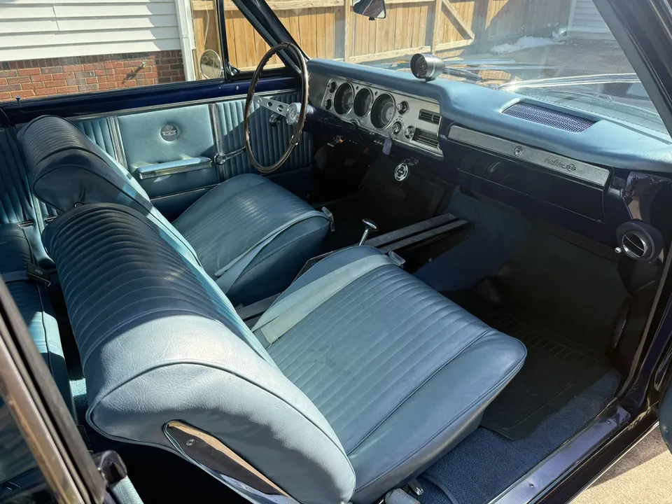 Coming Soon! 1964 Chevrolet Malibu SS, clean North Carolina car, factory Daytona blue car, factory medium blue interior, matching numbers 283 ci/250 hp engine, automatic transmission, power steering, power brakes, factory air conditioning, bucket seats with center console, factory tach & gauges, dual exhaust, factory rear axle, 15” Torque Thrust wheels, Ready to Cruise! $33,900
