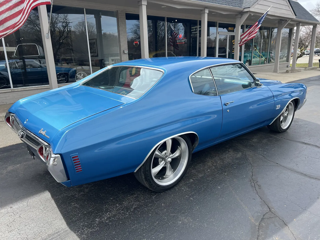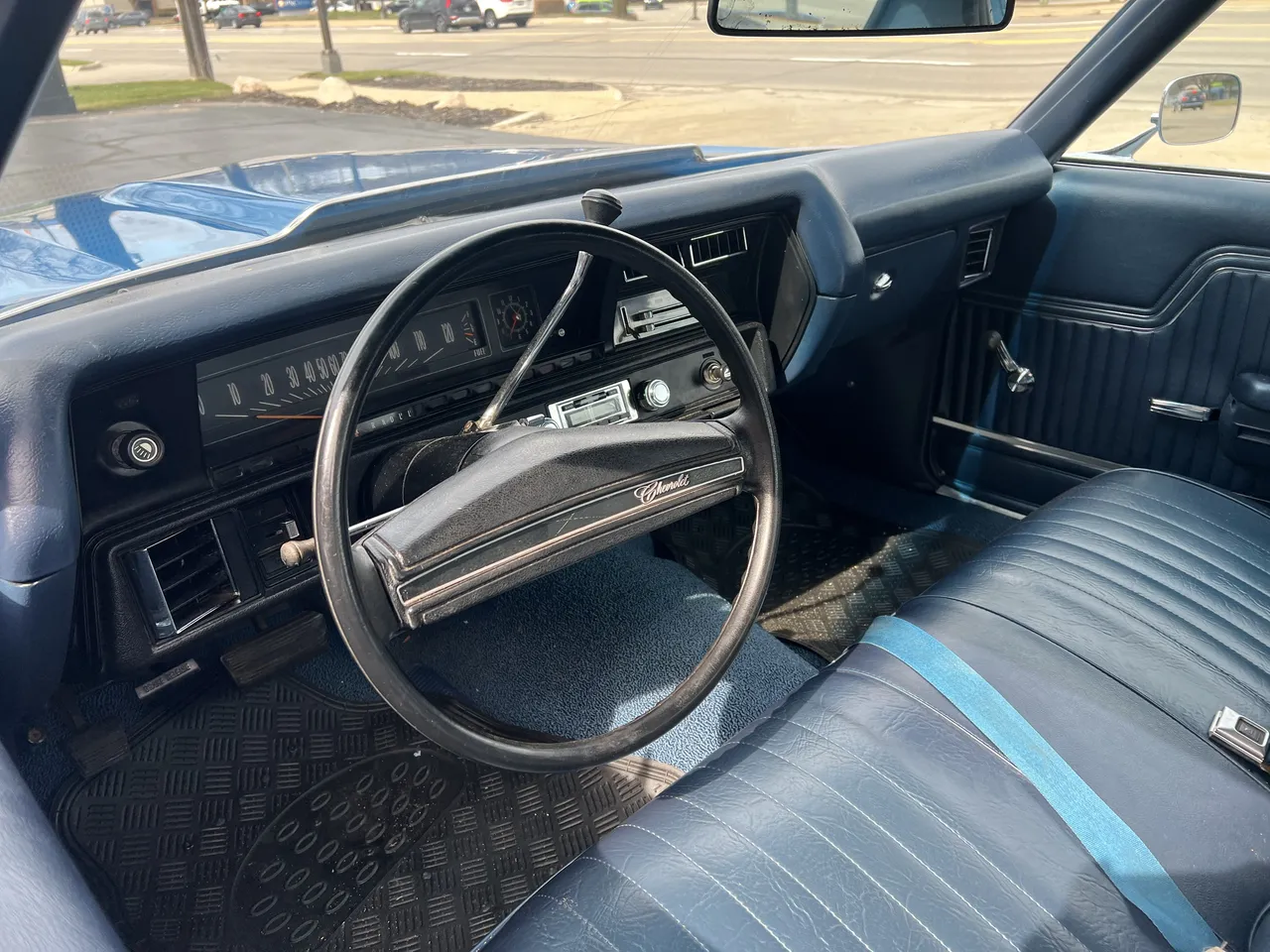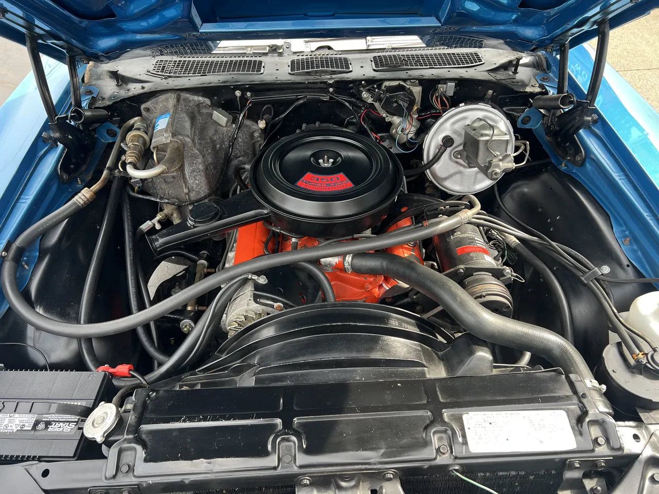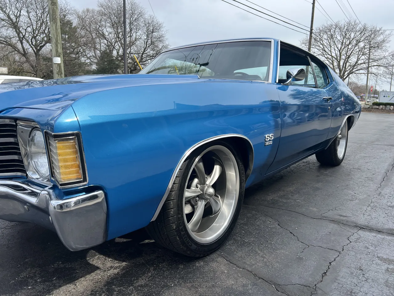 Sneak Peek! 1972 Chevrolet Malibu, factory Mulsanne blue metallic car, factory dark blue vinyl interior, matching number 350 ci engine, power steering, power front disc brakes, factory air conditioning, tubular front suspension, automatic transmission, bench seat interior, factory dash, dual exhaust, factory 12 bolt rear axle, Ridler wheels, cowl hood, Drive Anywhere! $39,500