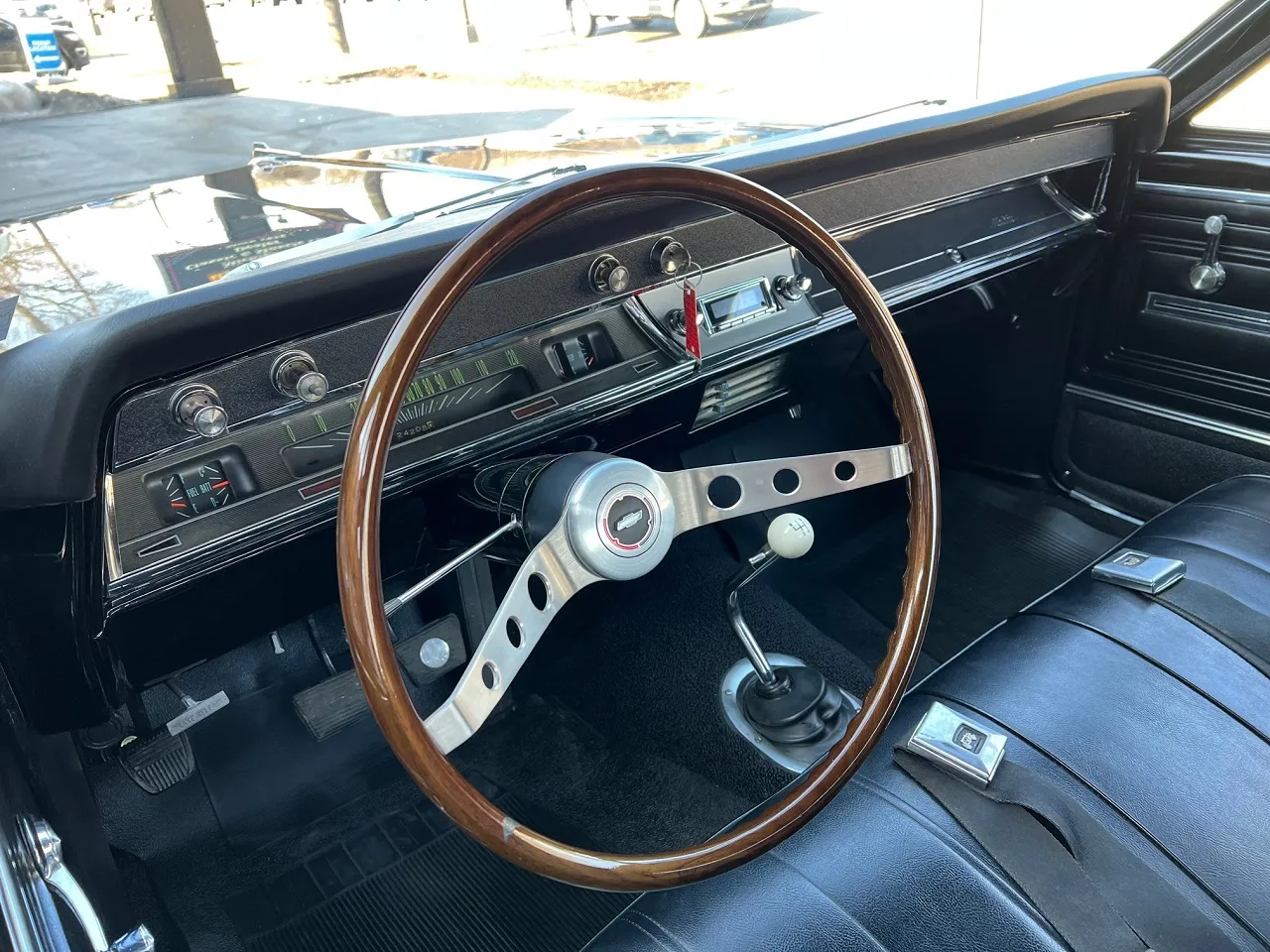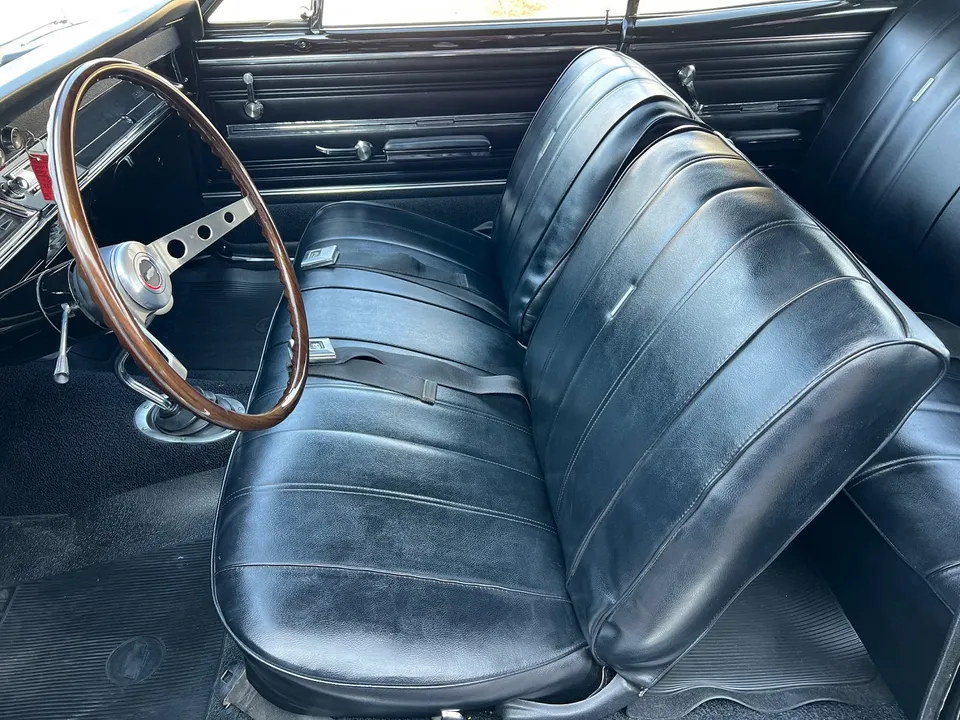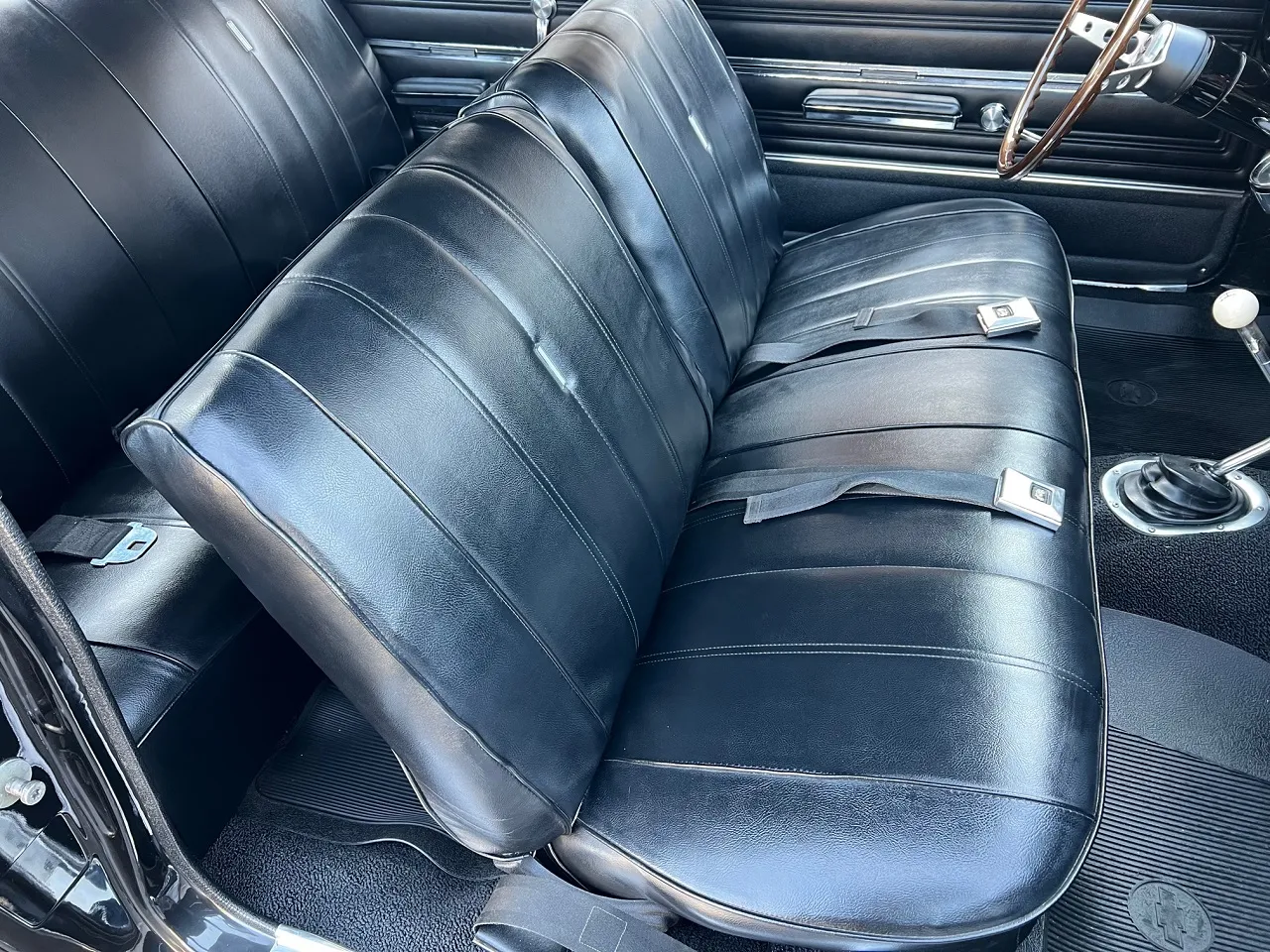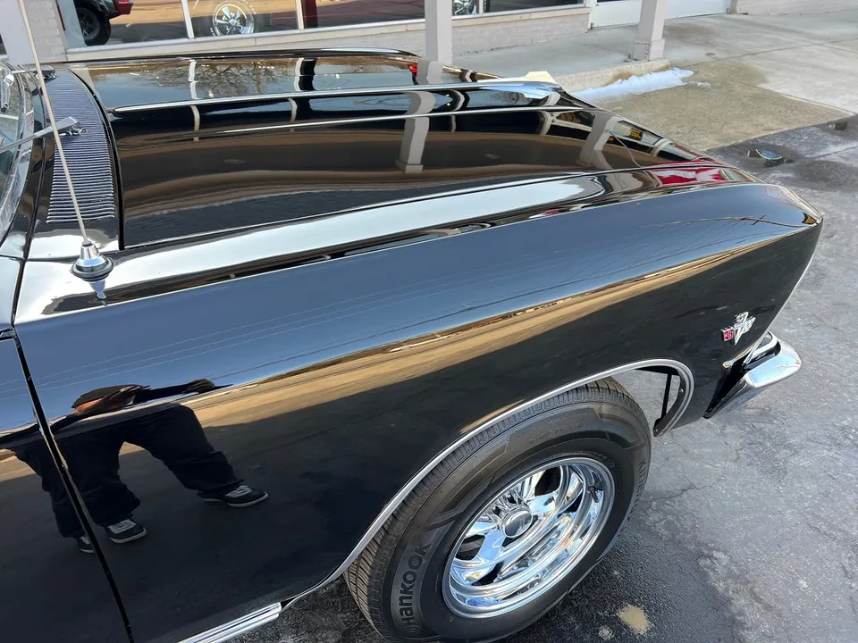 Coming Soon! Clean Original Tennessee car, Complete Body-Up Restoration, beautiful Tuxedo black paint, factory black vinyl interior, 350 ci crate engine, Muncie 4 speed manual transmission, Holley 4 bbl, Weiand aluminum intake, factory exhaust manifolds, HEI distributor, chrome air cleaner, finned aluminum valve covers, power steering, power front disc brakes, Harrison radiator, factory bench seat, Sport steering wheel, factory gauge cluster with “knee knocker” tach, Retrosounds radio, correct t-handle shifter, X pipe Flowmaster dual exhaust with chrome tips, factory 10 bolt rear end, 235/70R15 rear tires, 215/75R15 fronts, 15” chrome Rocket Racing wheels, factory jack with bias ply spare, Ready to Cruise!