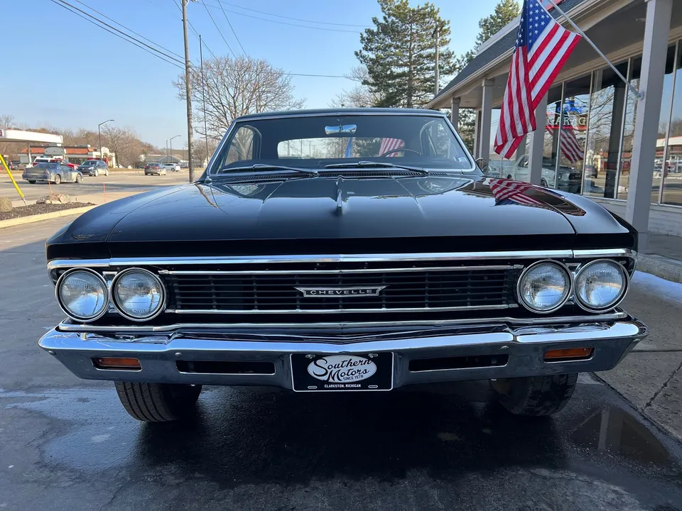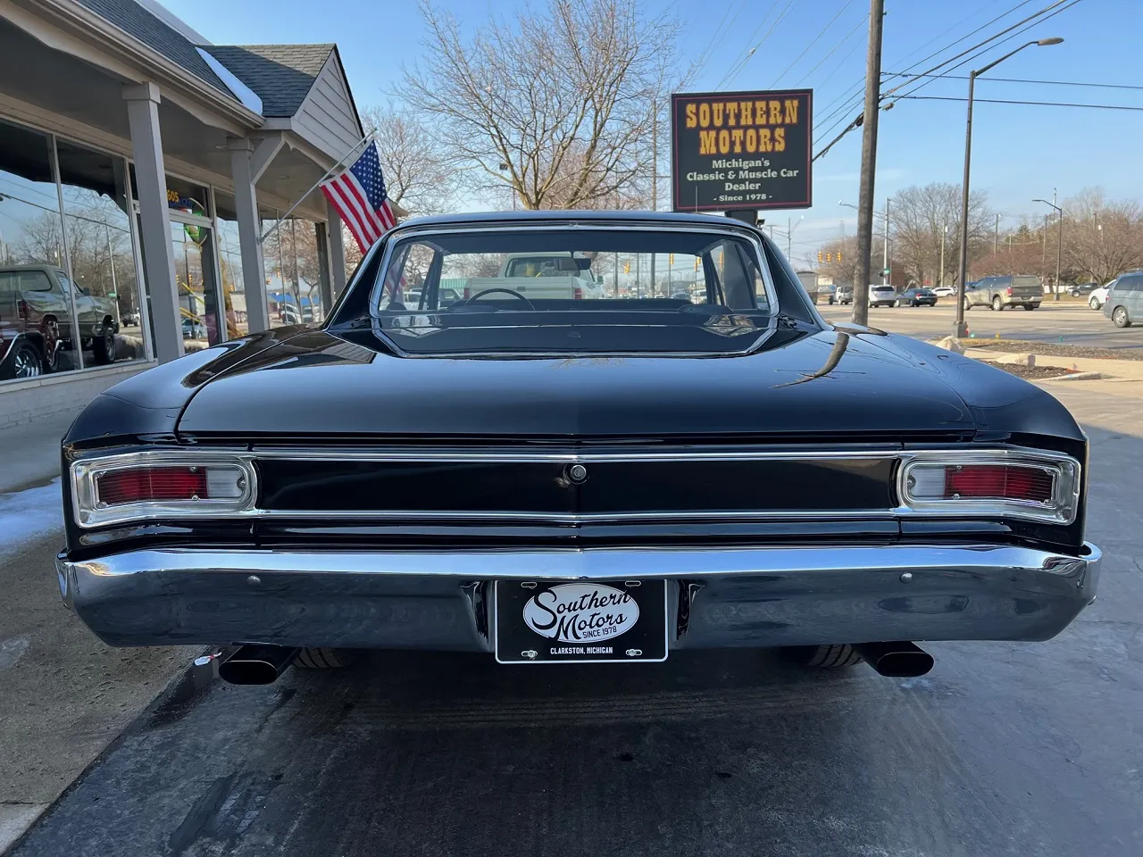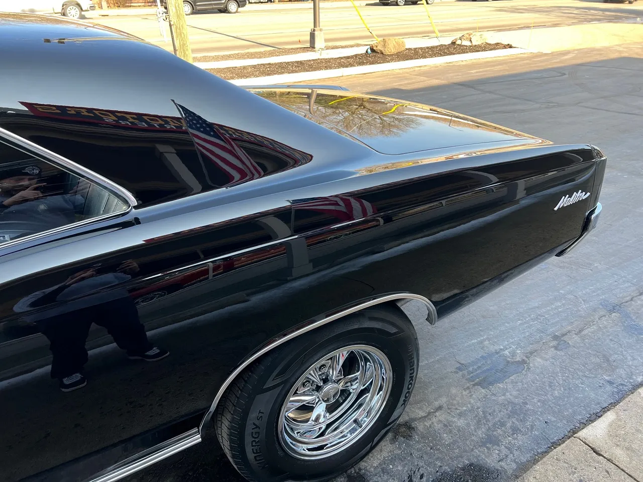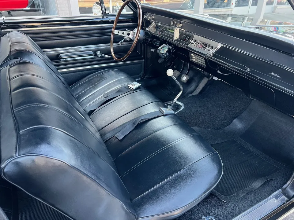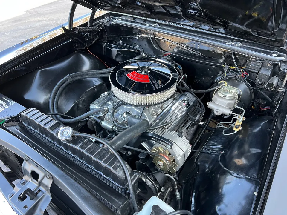 Coming Soon! Clean Original Tennessee car, Complete Body-Up Restoration, beautiful Tuxedo black paint, factory black vinyl interior, 350 ci crate engine, Muncie 4 speed manual transmission, Holley 4 bbl, Weiand aluminum intake, factory exhaust manifolds, HEI distributor, chrome air cleaner, finned aluminum valve covers, power steering, power front disc brakes, Harrison radiator, factory bench seat, Sport steering wheel, factory gauge cluster with “knee knocker” tach, Retrosounds radio, correct t-handle shifter, X pipe Flowmaster dual exhaust with chrome tips, factory 10 bolt rear end, 235/70R15 rear tires, 215/75R15 fronts, 15” chrome Rocket Racing wheels, factory jack with bias ply spare, Ready to Cruise!
