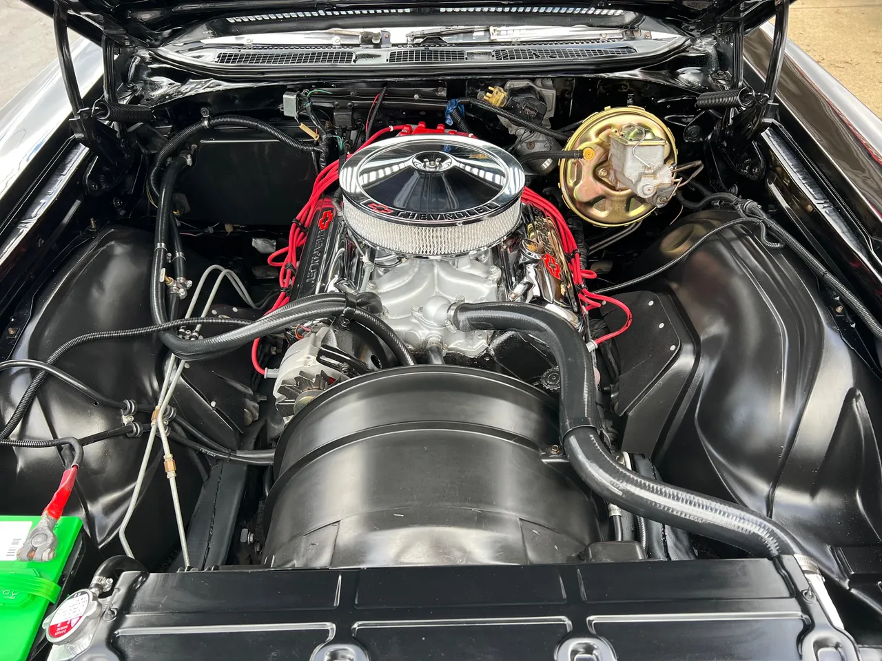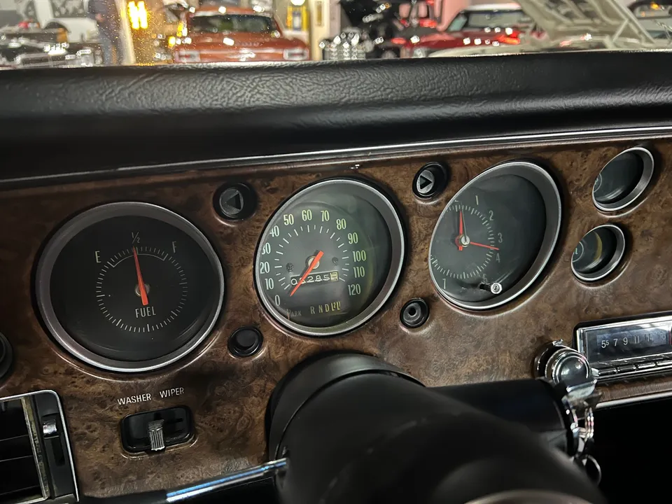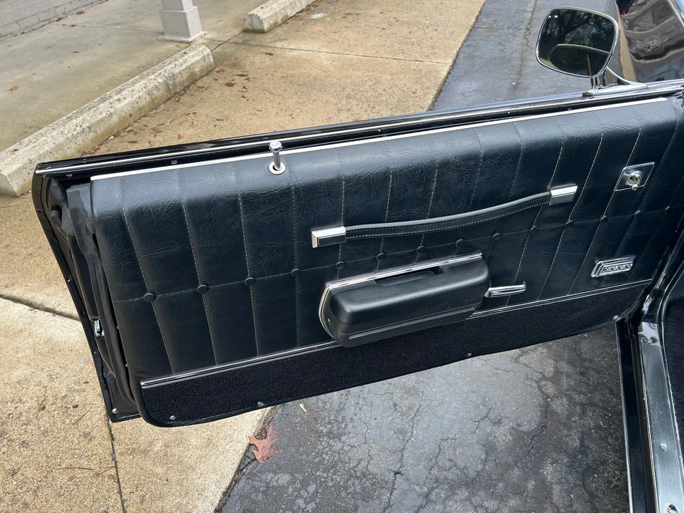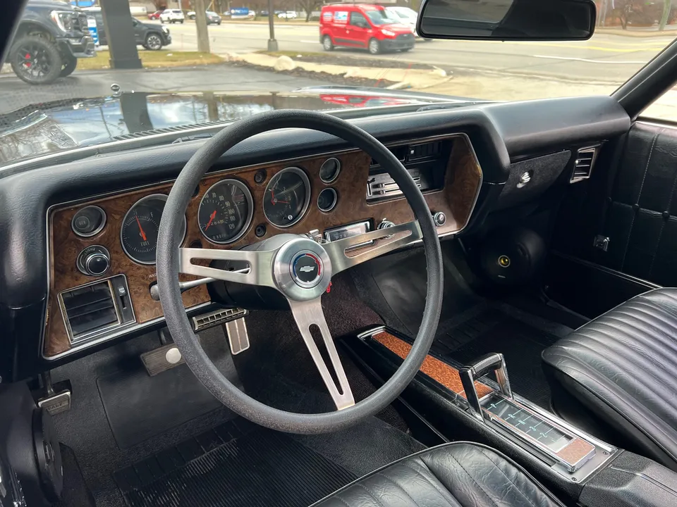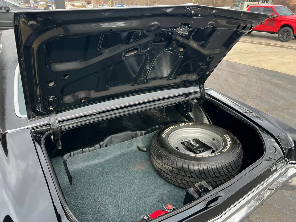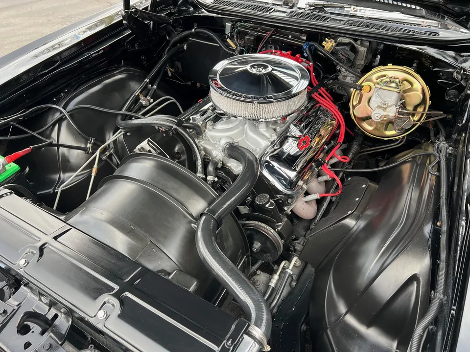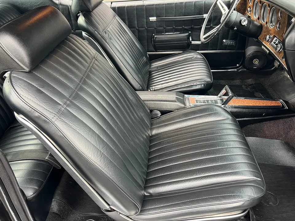 Recent Frame-Off Restoration, beautiful Tuxedo black paint, black vinyl top, black vinyl interior, matching numbers LS3 402 ci engine, Holley Performance dual feed 4 bbl, Edelbrock Performer aluminum intake, MSD Pro Billet distributor, headers, chrome air cleaner & valve covers, power steering, power front disc brakes, aluminum radiator with factory shroud, 400 tubohydramatic transmission, factory bucket seats with center console, tilt column with Sport wheel, factory woodgrain dash, Retrosounds sound system, power windows, Flowmaster dual exhaust with chrome tips, 12 bolt 3.23 rear axle with F41 suspension, 255/60R15 Cooper rear tires, 235/60R15 fronts, 15” factory Rally wheels with caps, original owner’s manual, One Bad Bowtie!