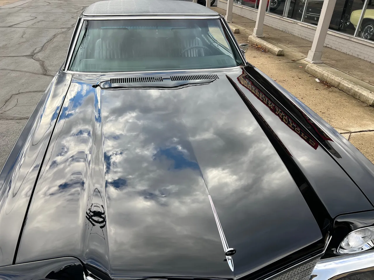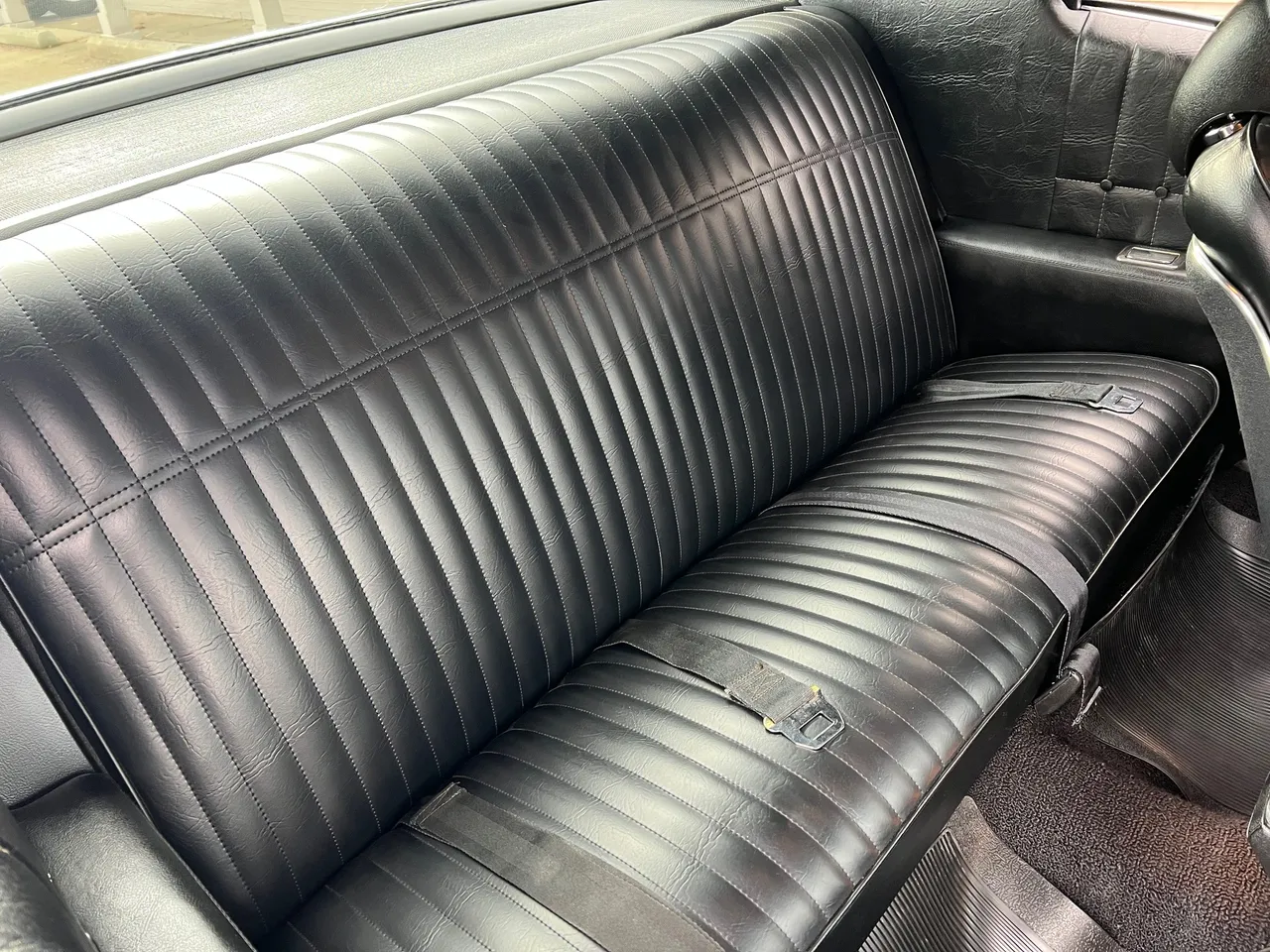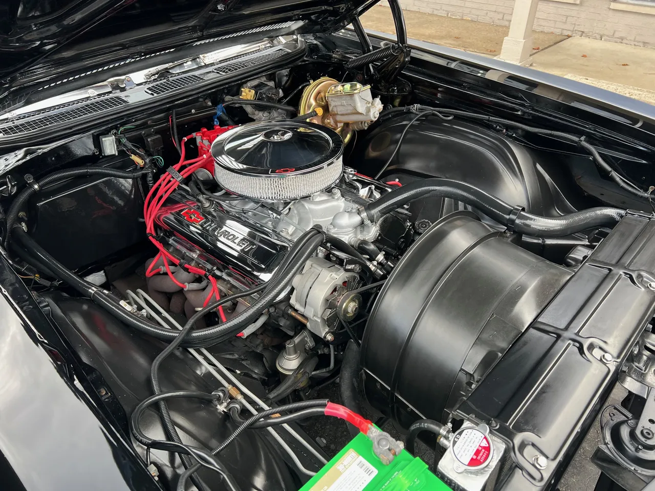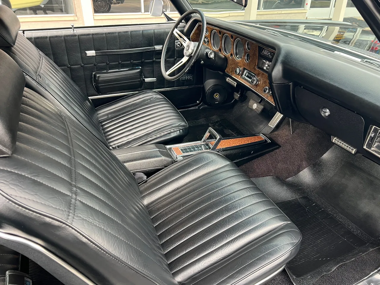 Recent Frame-Off Restoration, beautiful Tuxedo black paint, black vinyl top, black vinyl interior, matching numbers LS3 402 ci engine, Holley Performance dual feed 4 bbl, Edelbrock Performer aluminum intake, MSD Pro Billet distributor, headers, chrome air cleaner & valve covers, power steering, power front disc brakes, aluminum radiator with factory shroud, 400 tubohydramatic transmission, factory bucket seats with center console, tilt column with Sport wheel, factory woodgrain dash, Retrosounds sound system, power windows, Flowmaster dual exhaust with chrome tips, 12 bolt 3.23 rear axle with F41 suspension, 255/60R15 Cooper rear tires, 235/60R15 fronts, 15” factory Rally wheels with caps, original owner’s manual, One Bad Bowtie!