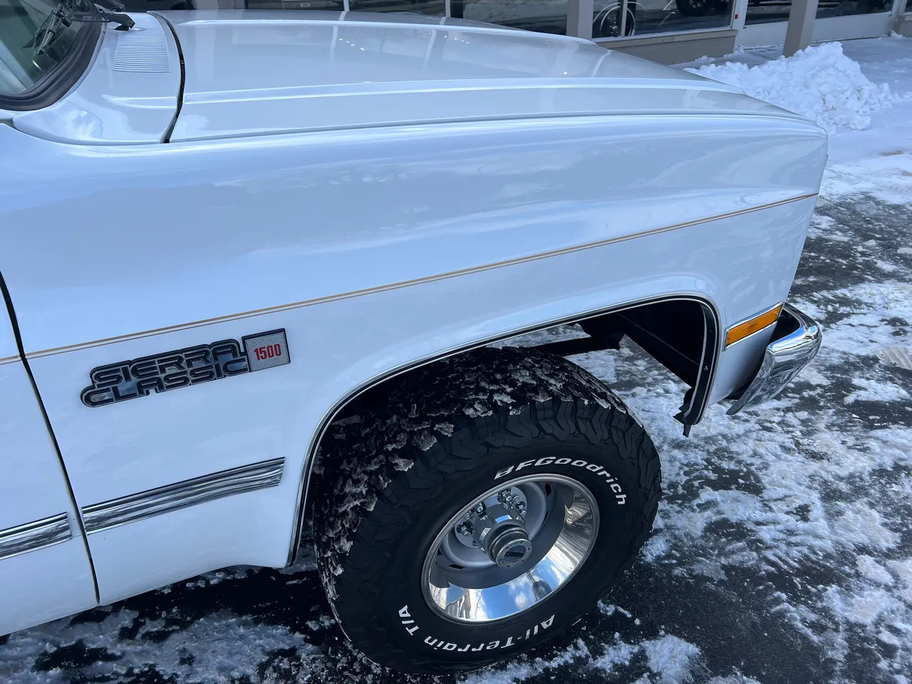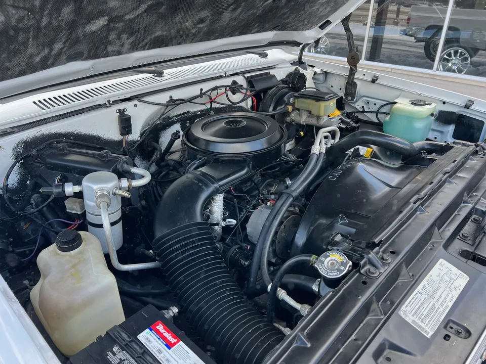 Clean Original California 4X4 Sierra Classic Short Box truck, Clean Carfax with 63,000 original miles, beautiful factory (5111) white truck, factory (62V) light saddle interior, factory 5.0 liter EFI engine, factory intake & exhaust manifolds, power steering, power front disc brakes, factory air conditioning, 700R4 automatic overdrive transmission, bench seat, tilt column, cruise control, factory dash & gauges, Delco am-fm-cassette, dual tanks, factory exhaust, factory 3.73 rear axle, 31X10.5R15LT BF Goodrich tires, factory 15” Rally wheels, dual chrome mirrors, front spoiler, rhino lined bed, original owner’s manuals, Drive Anywhere!