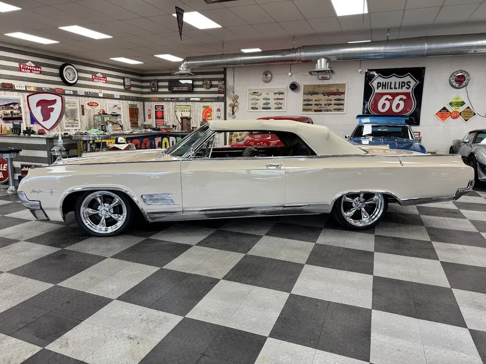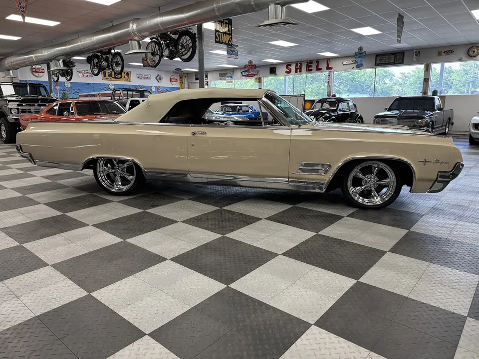 Coming Soon! 1964 Oldsmobile Starfire Convertible, beautiful Cashmere Beige paint, stunning Saddle interior, 394 ci V8 engine, Roto Hydramatic automatic transmission, power steering, power brakes, factory A/C, Custom leather bucket seat interior with center console, power windows, power top, working AM radio, factory dash and steering wheel, factory tach, 18 & 20” Chrome Americans, Ready to cruise! $38,900