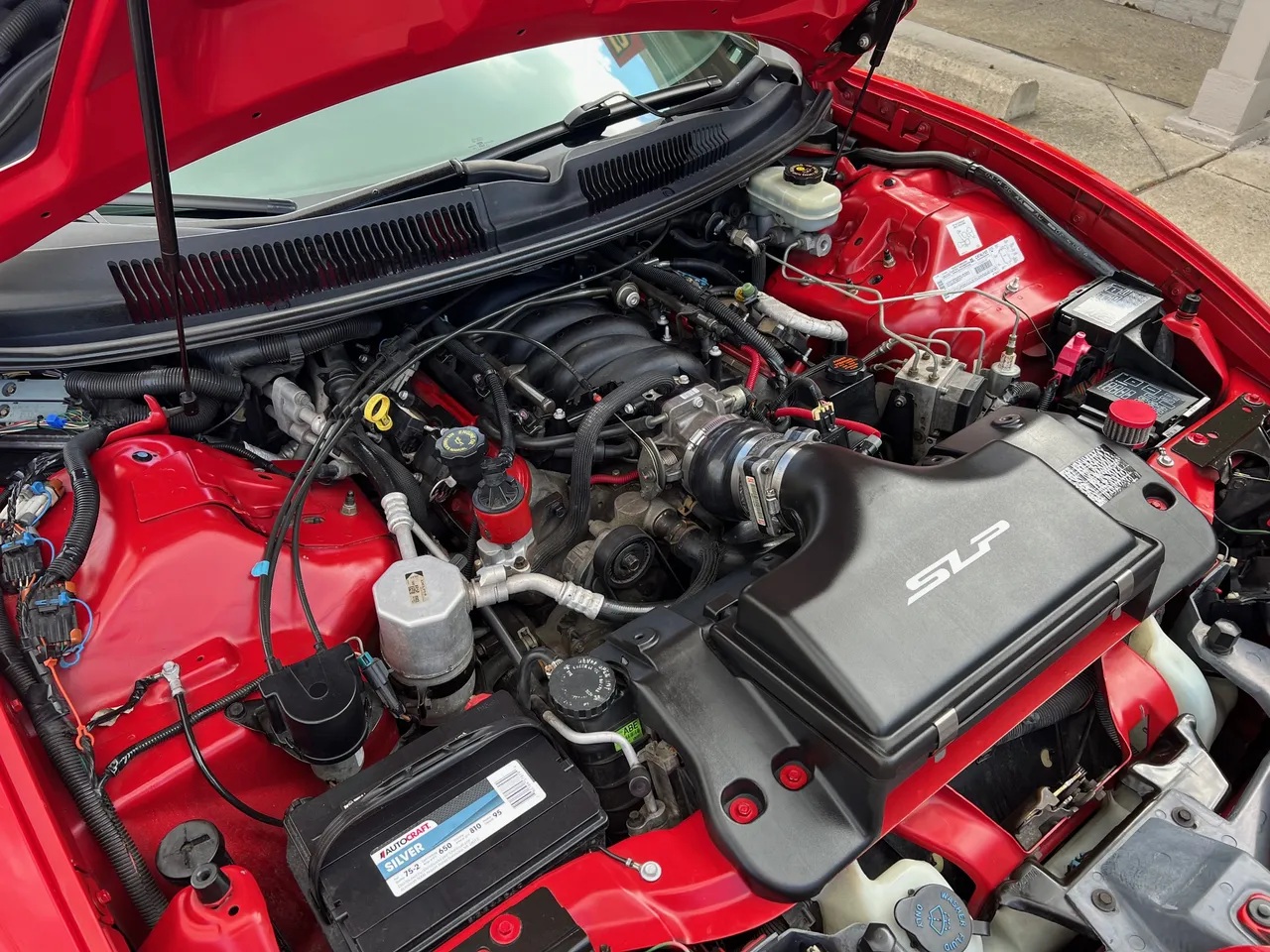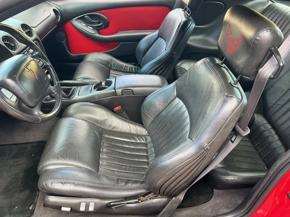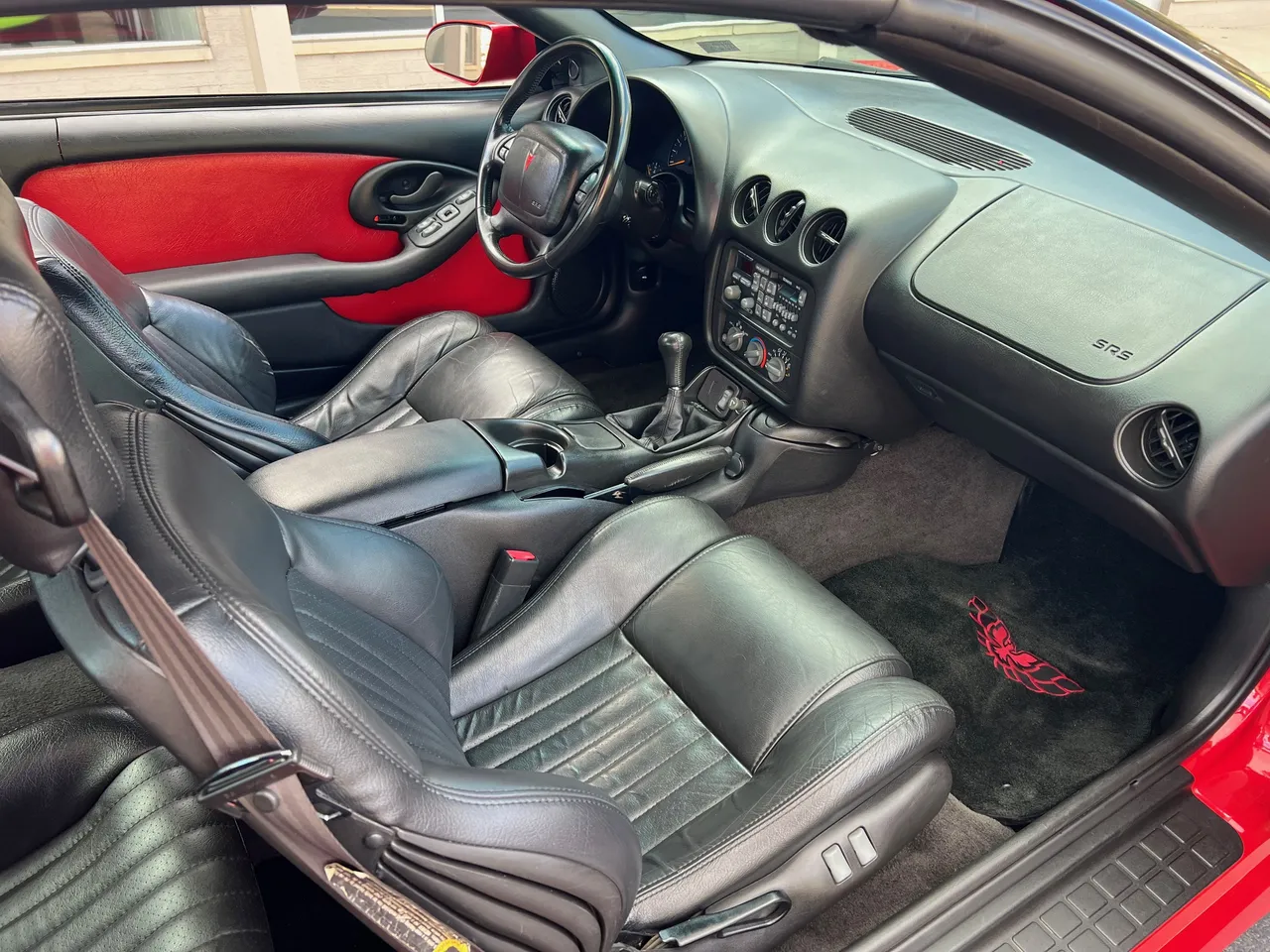 50,000 original mile car with Clean Carfax, factory WS6 Performance Package, factory (81) Bright red paint, factory (191) black leather interior, factory LS1 5.7 liter engine, new 6 speed manual transmission, new clutch, upgraded cold air intake, Comp camshaft, headers, power steering, power 4-wheel disc brakes, factory air conditioning, factory bucket seats with center console, power seats, power windows & locks, tilt-cruise, factory tach & gauges, Delco am-fm-cd player, power mirror’s, rear defog, electronic traction control, custom Flowmaster exhaust system with electric cut-outs, factory (GU6) (G80) 3.42 posi-traction rear axle, factory (FE4) ride & handling package, 275/40ZR17 Toyo tires, factory 17X9 aluminum wheels, (Y82) Trans Am spoiler package, Ram Air hood, T-Tops, keyless entry, factory daytime running lights, Show or Go!